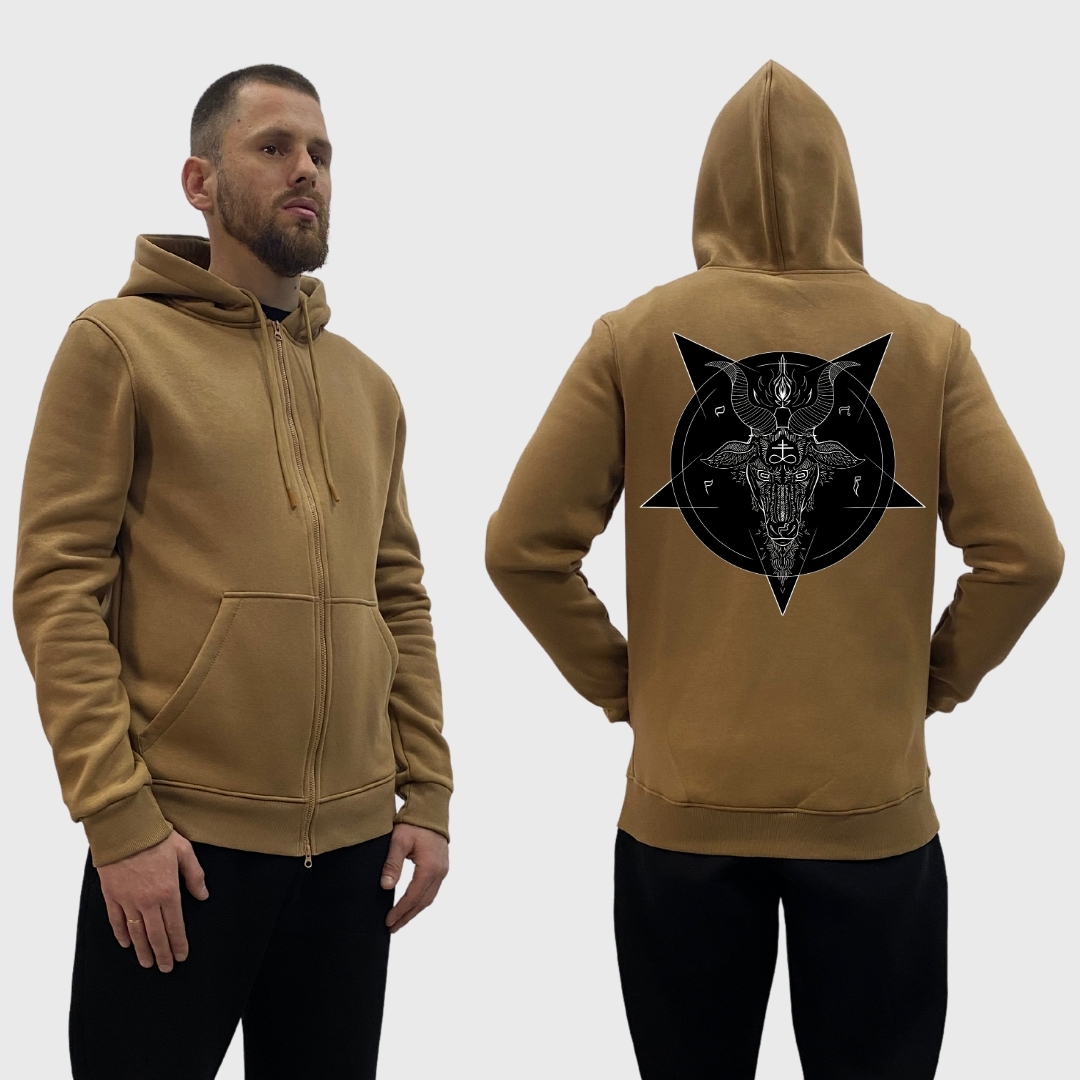 Чоловічий зіп-худі на флісі з принтом Бафомет пентограма — це не просто одяг, а стильний елемент вашого гардеробу, який подарує вам комфорт у холодну пору року. Виготовлений з трьохнитки на флісі, він забезпечує тепло і затишок, що робить його ідеальним вибором для осені та зими.