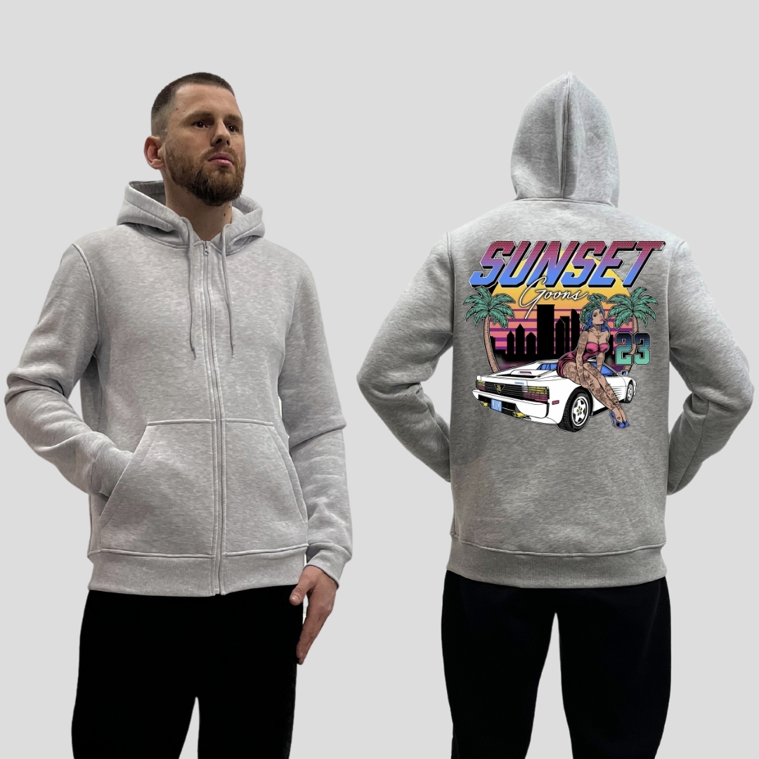 Чоловічий зіп-худі на флісі з принтом Sunset Goons — це не просто одяг, а стильний елемент вашого гардеробу, який підходить для повсякденного носіння. Завдяки своєму складу з 90% бавовни та 10% еластану, цей худі забезпечує відмінну терморегуляцію, що робить його ідеальним для осінньо-зимового періоду. Трьохниткова тканина на флісі дарує відчуття м'якості та затишку при носінні.