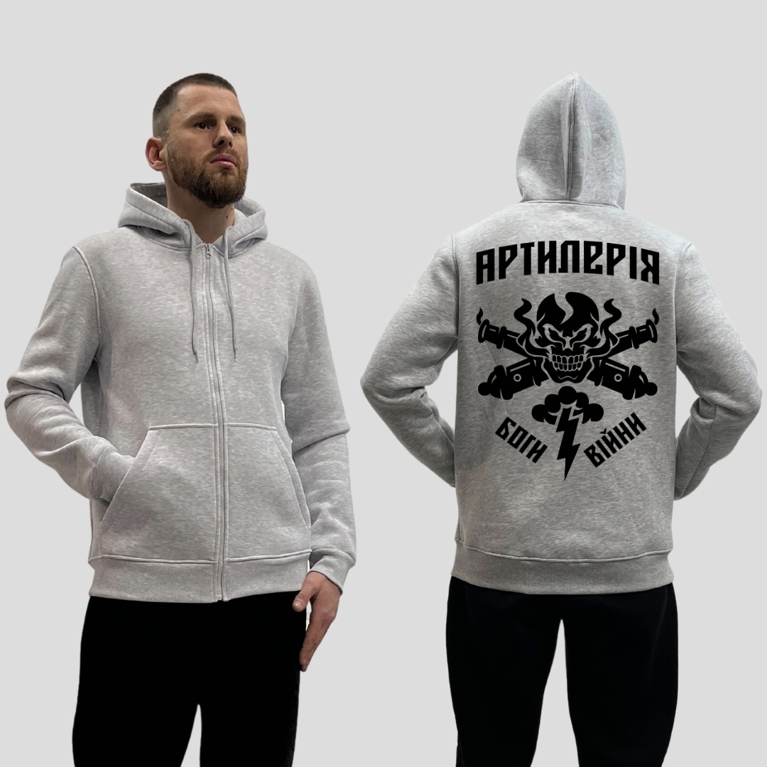 Принт "Артилерія: боги війни" додає унікальності та виразності, що робить цей худі ідеальним вибором для тих, хто хоче виділитися з натовпу. Застібка на блискавці дозволяє легко одягати та знімати худі, а також регулювати рівень комфорту залежно від погоди.