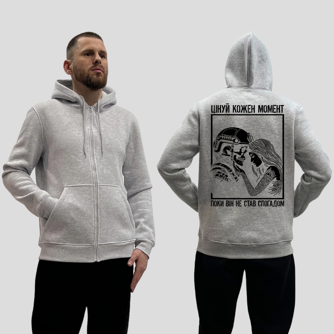 Чоловічий зіп-худі на флісі з принтом "Цінуй кожен момент" — це ідеальний вибір для тих, хто цінує комфорт та стиль. Завдяки високоякісному матеріалу з трьохнитки на флісі, ви будете відчувати тепло та затишок навіть у найхолодніші дні. Прямий крій та зручна блискавка роблять цей худі практичним для повсякденного використання.