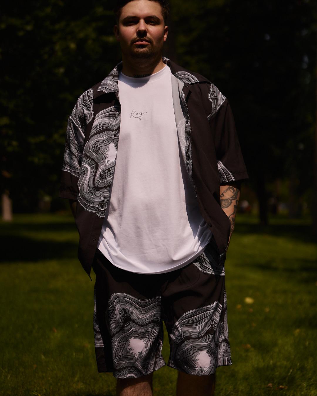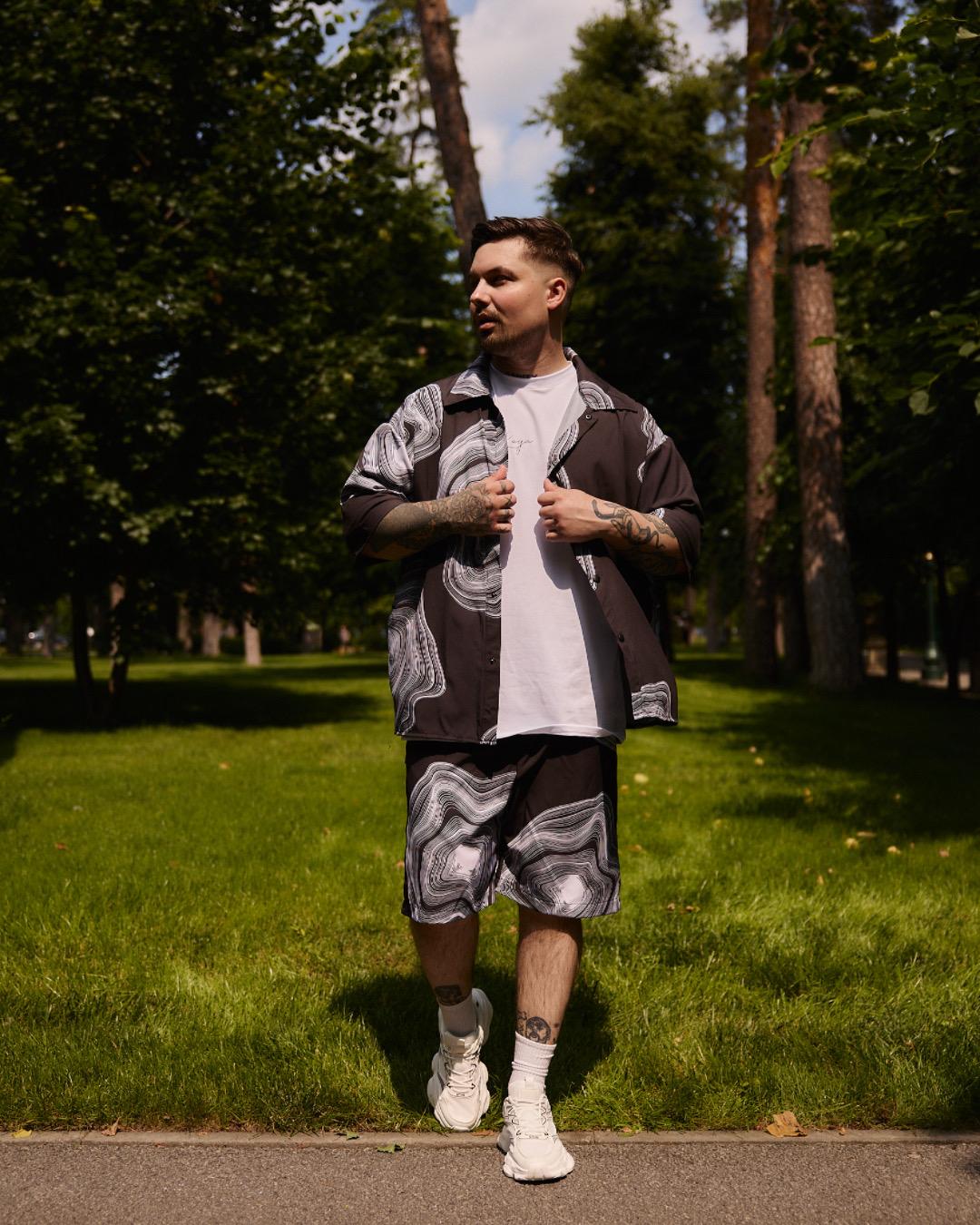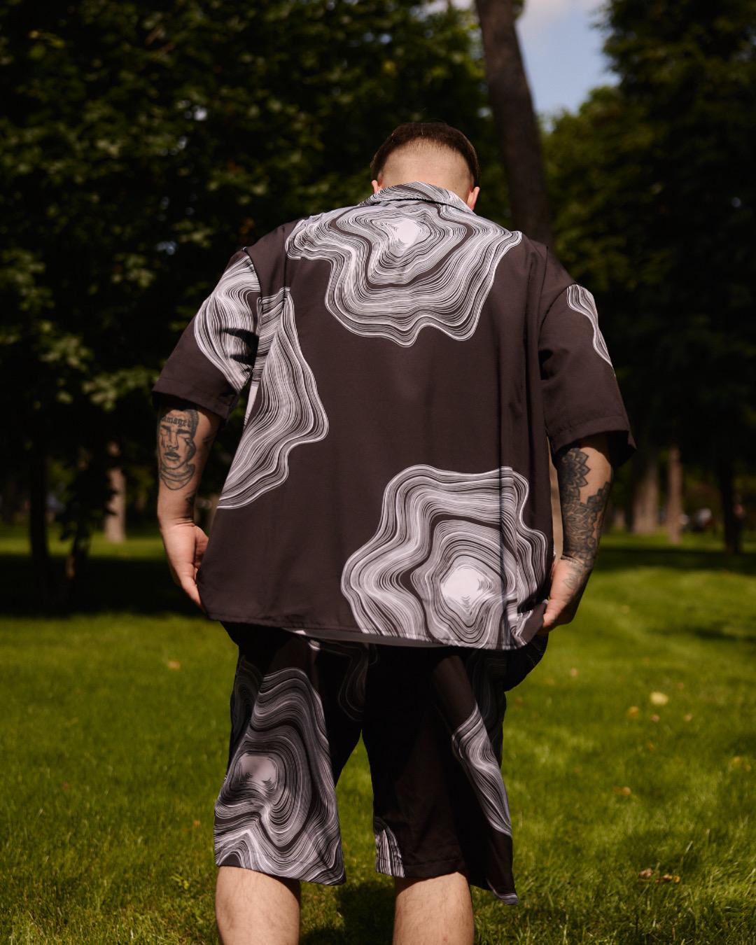 Шорти-сорочка з чорними принтами — це стильний та функціональний елемент вашого гардеробу. Виготовлені з легкого матеріалу, вони забезпечують максимальний комфорт у спекотні дні. Завдяки своєму унікальному дизайну, ці шорти можуть стати основою для створення різноманітних образів — від повсякденного до більш святкового.
