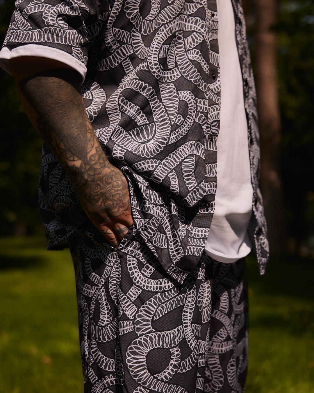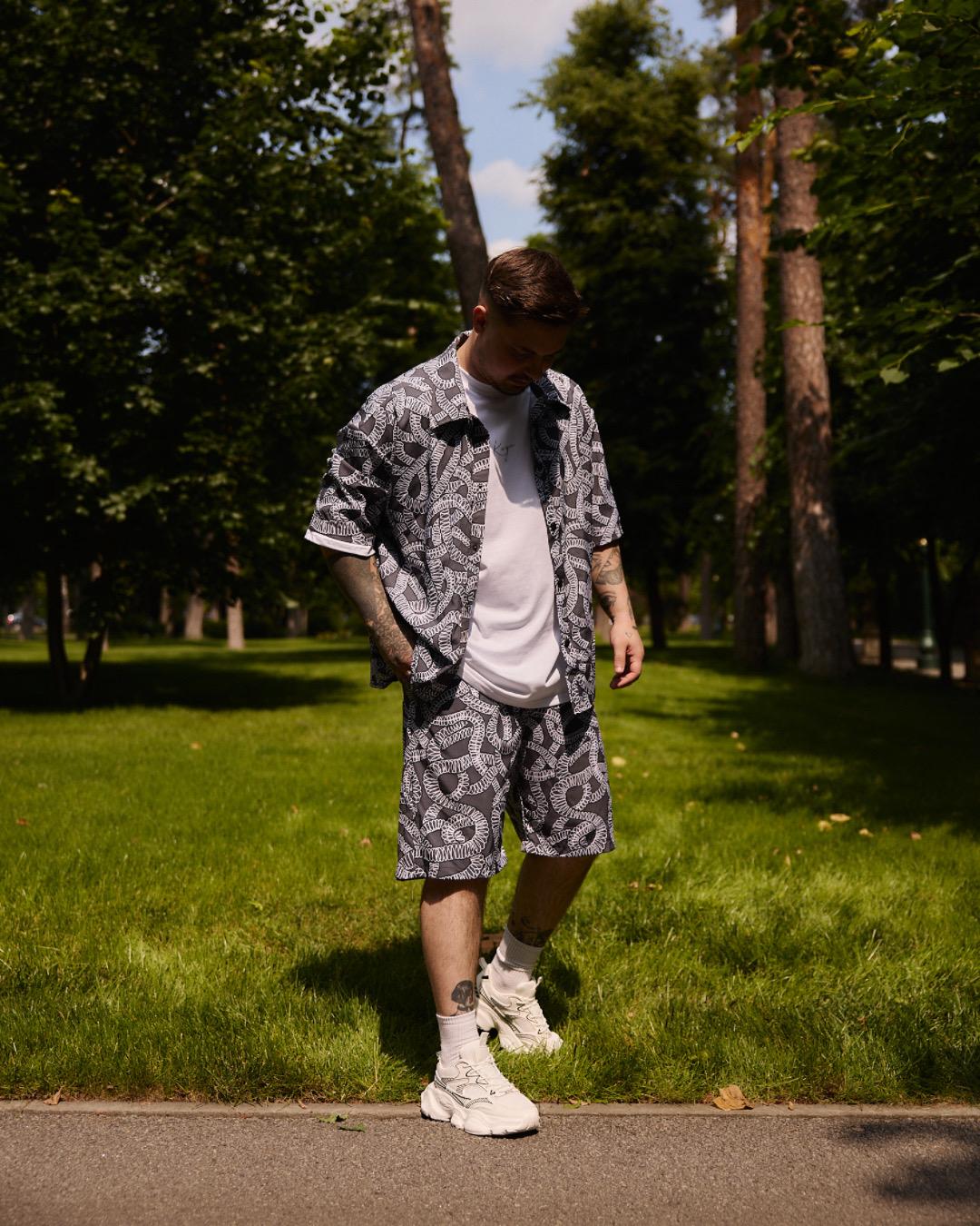 Шорти-сорочка з принтом "Змія" ідеально підійдуть для молодих людей, які цінують стиль і комфорт. Вони стануть чудовим вибором для активних людей, які люблять подорожі, відпочинок на природі або прогулянки містом.