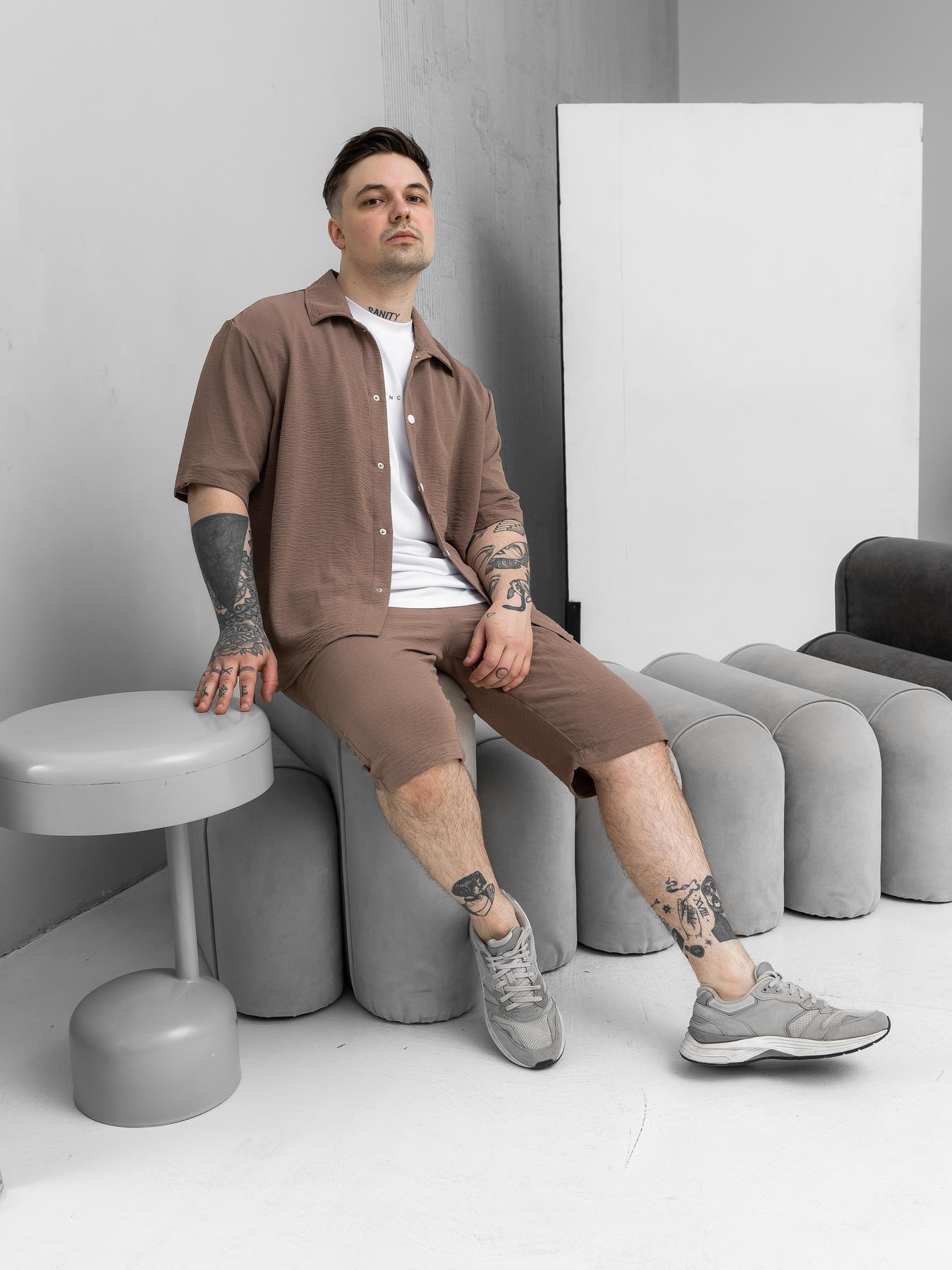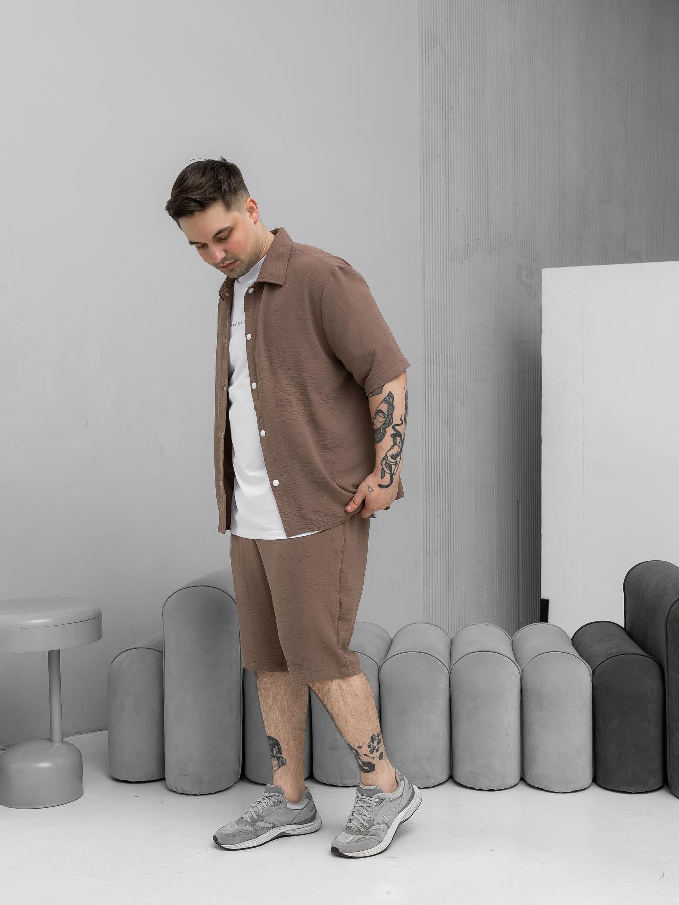 Шорти-сорочка какао — це ідеальний вибір для тих, хто цінує стиль та комфорт. Виготовлені з легкого та дихаючого матеріалу креп, вони забезпечують максимальний комфорт під час носіння. Короткий рукав і пояс на резинці роблять їх ідеальними для теплої погоди, а бокові кармани додають практичності.