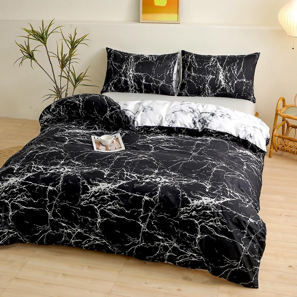 Постільна білизна в мармуровому стилі чорного кольору підковдра простирадло наволочки Денвер
