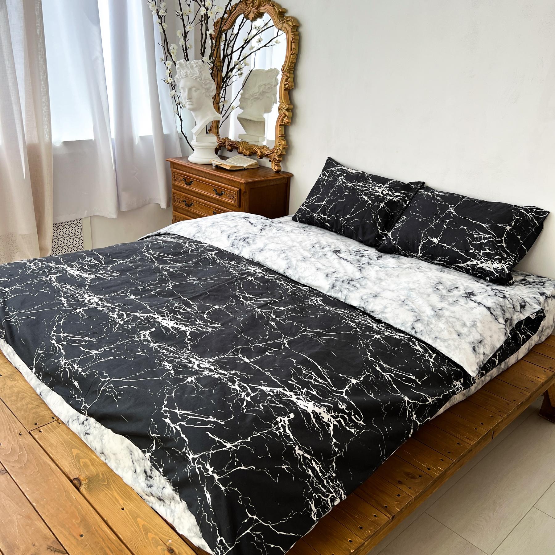 Постільна білизна чорна наволочки на подушки простирадло підковдра комплект мармур
