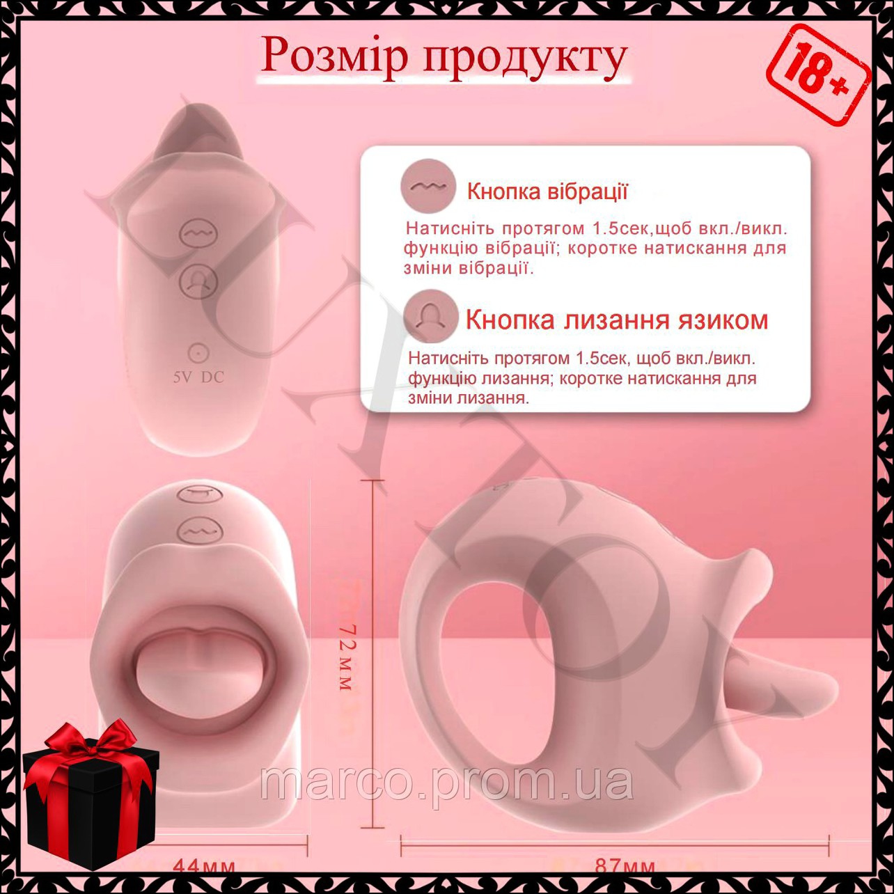 - Два режими: лизання і вібрація для максимального задоволення