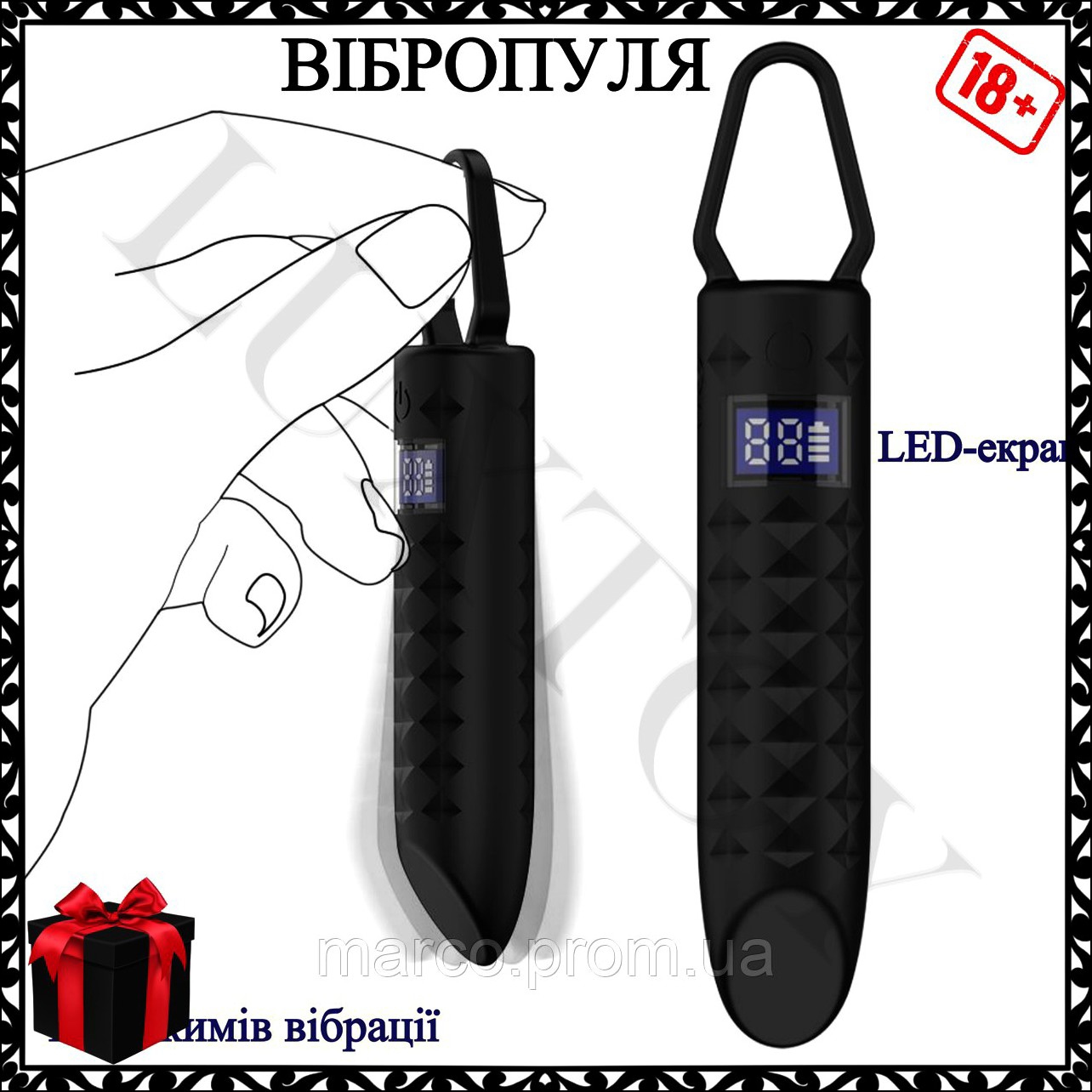 - Особливості: водонепроникний дизайн, 10 режимів вібрації, жидкокристалічний екран