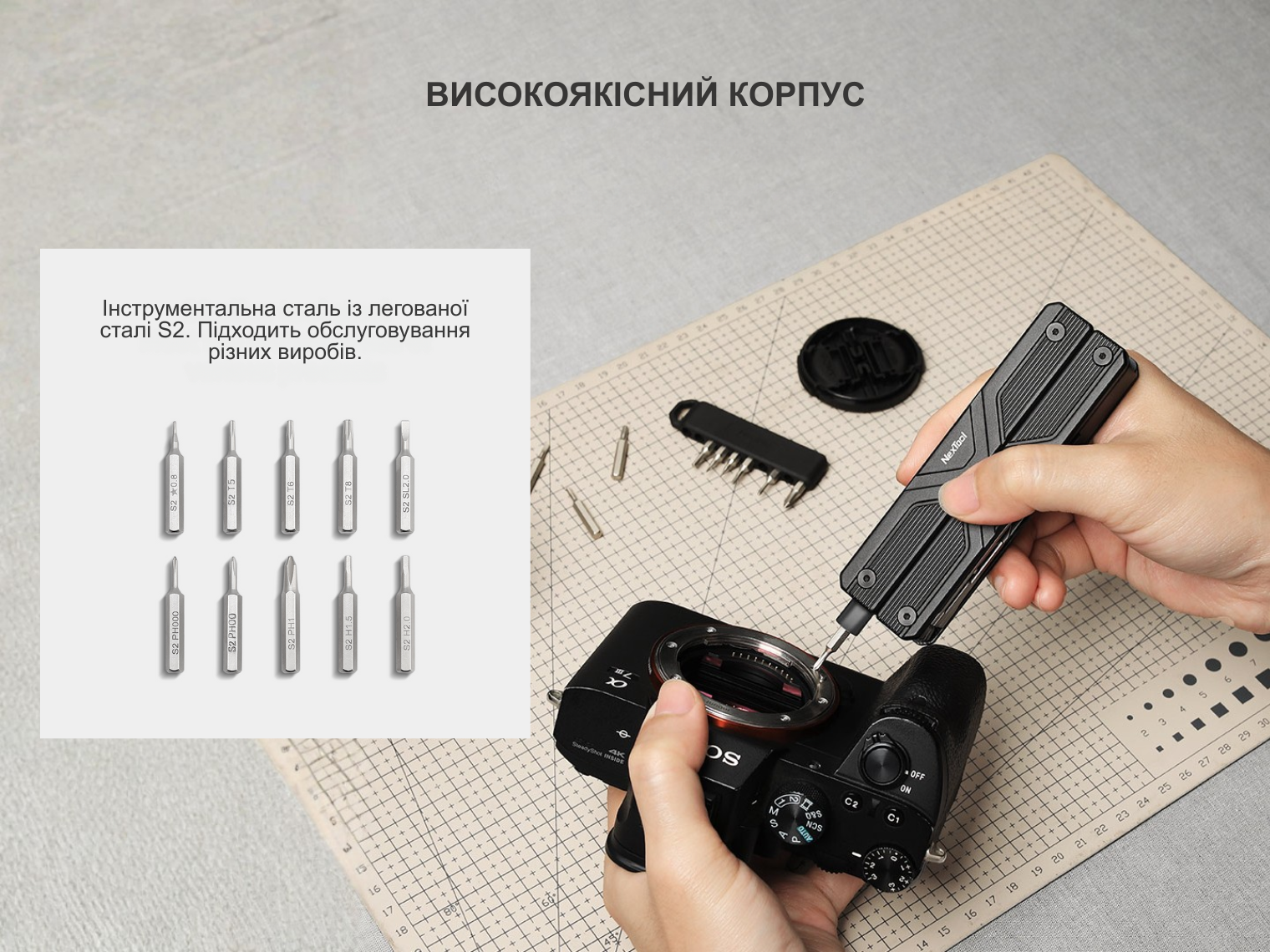 • у комплекті є набір з 10 змінних біт, зарядний кабель, фірмовий чохол.