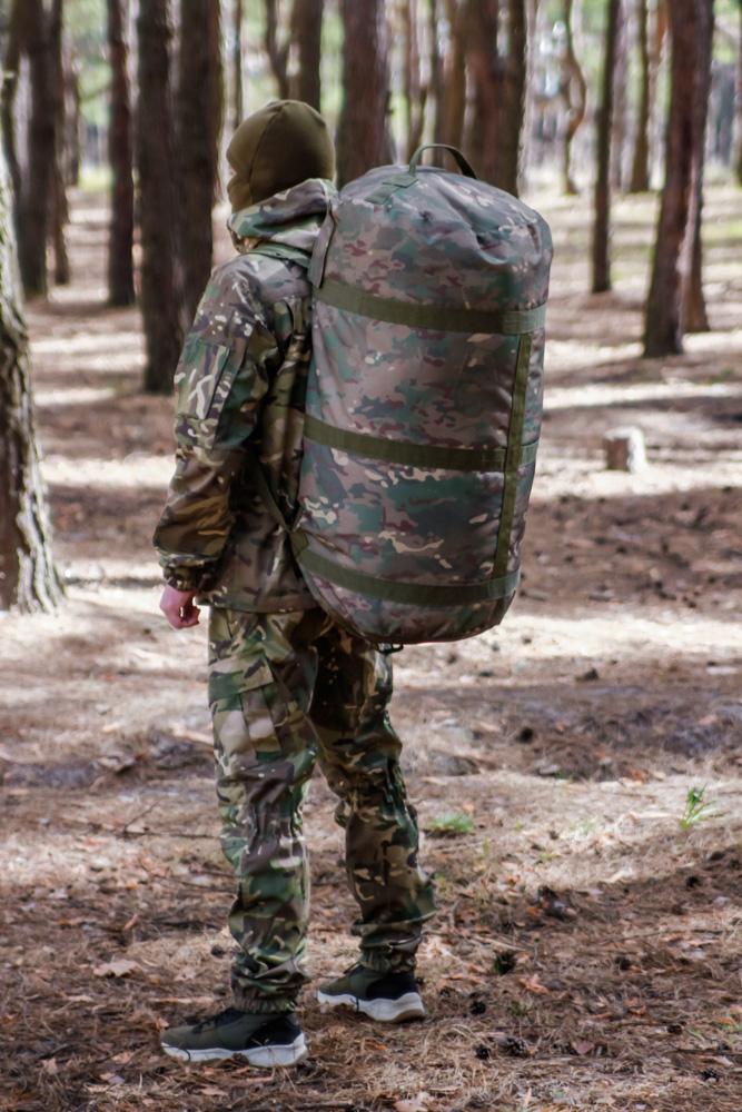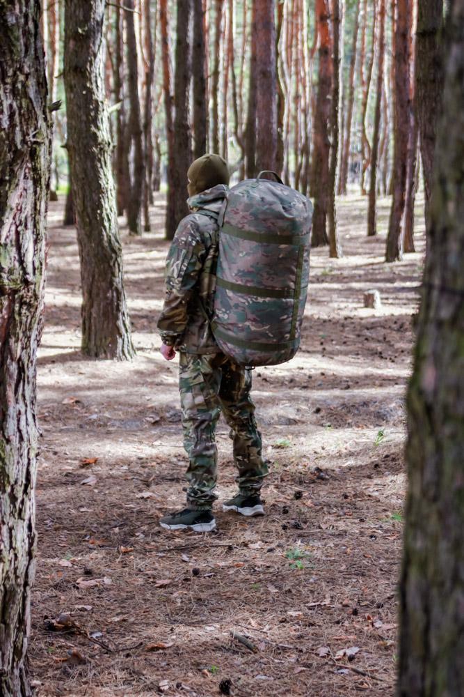 Баул об'ємом 110 літрів у стильному мультикам-колірному дизайні — це ідеальне рішення для тих, хто цінує якість та функціональність. Виготовлений з водонепроникної та стійкої до розривів тканини Кордура 1000, він забезпечує надійний захист ваших речей під час подорожей, кемпінгу або активного відпочинку.