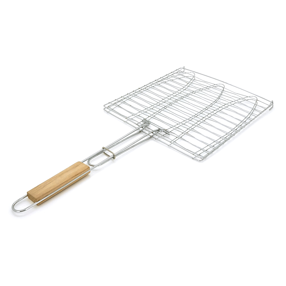 - Рівномірне приготування: Подвійна конструкція решітки дозволяє перевертати рибу одним рухом, забезпечуючи рівномірне приготування з обох сторін.