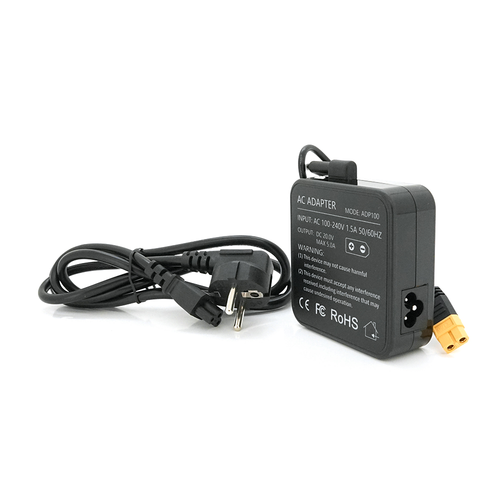 Адаптер живлення ToolkitRc ADP100 призначений для подачі електропостачання з постійним струмом і має потужність 100 Вт. Він здатний видавати напругу 20,0 В і струм до 5А, що робить його ідеальним для зарядки різних пристроїв, таких як акумулятори для моделей, електроніка та інші пристрої, що потребують постійного електроживлення.