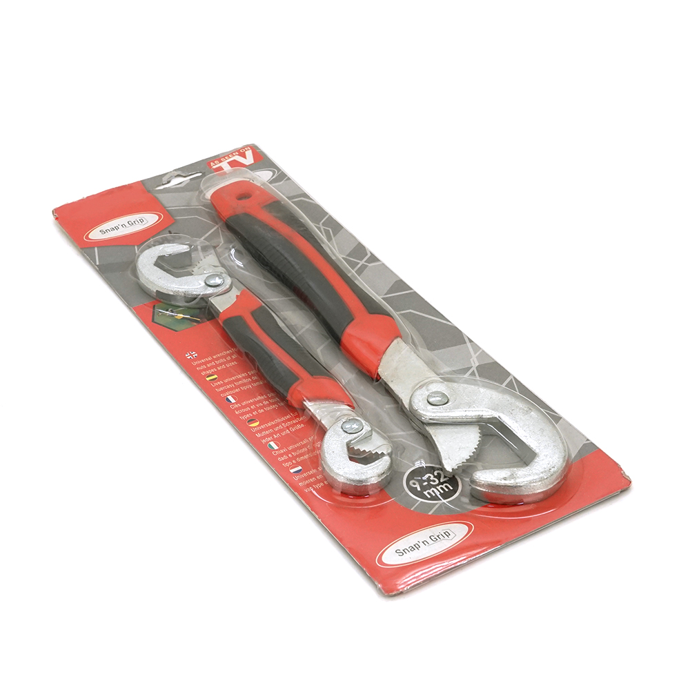 Універсальний ключ Snap n Grip представляє собою набір з двох ключів, здатних підлаштовуватися під будь-який розмір гайок і болтів від 9 до 32 мм. Цей інструмент ідеально підходить для швидкої та зручної роботи з різними видами кріплення.