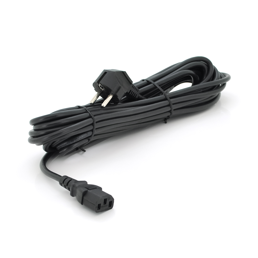 Кабель має євровилку і роз'єм C13 з 3 пинами, що робить його сумісним з більшістю стандартних електричних пристроїв. Його міцна конструкція гарантує довговічність, а гнучкість дозволяє легко маневрувати і укладати кабель у потрібному напрямку.