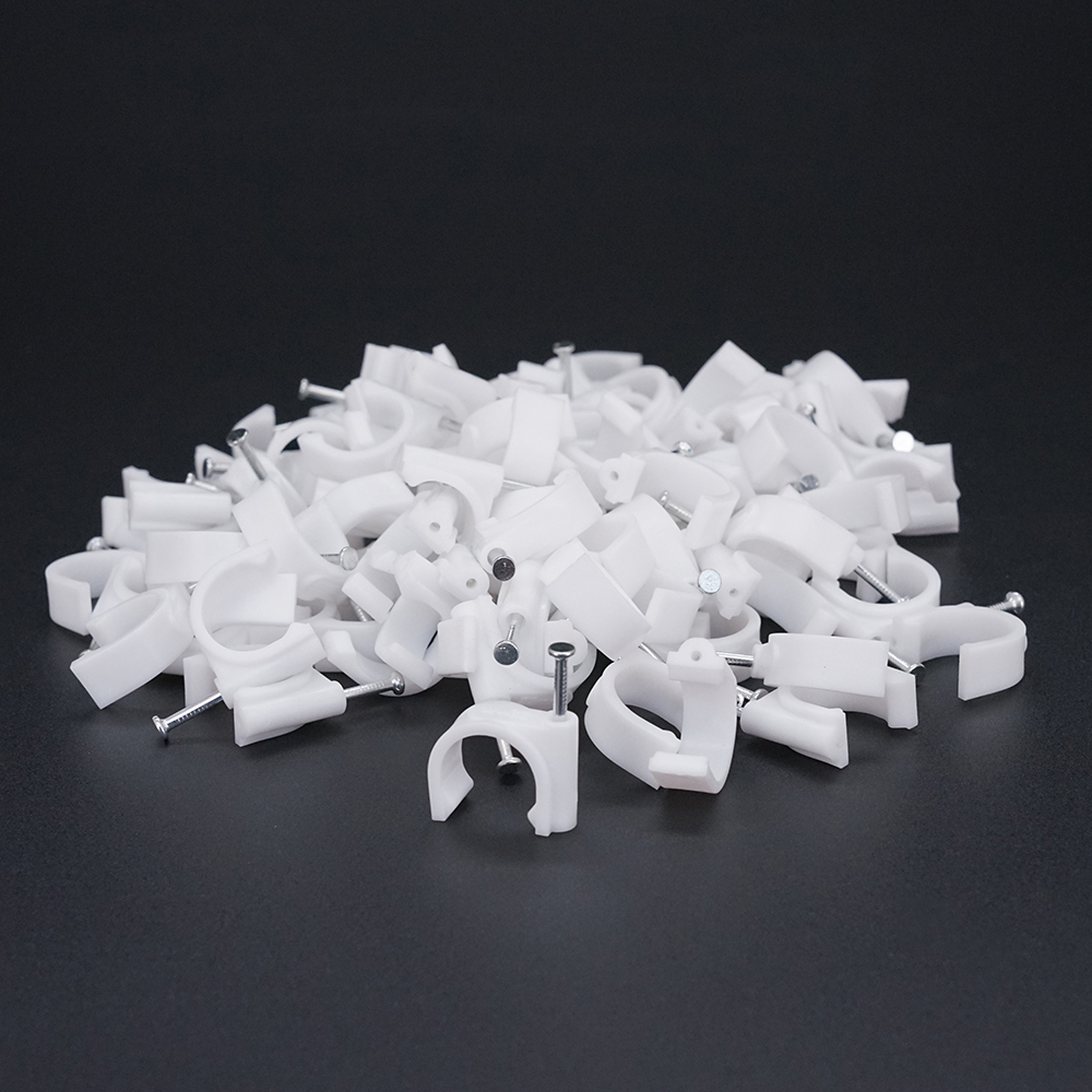 Ці скоби призначені для надійної фіксації кабелів, запобігаючи їх переміщенню і заплутуванню. Їх білий колір робить їх практично непомітними на стінах і стелях, що додає естетики в інтер'єр. Скоби легко встановлюються, що дозволяє вам швидко і без зайвих зусиль організувати ваші проводи.