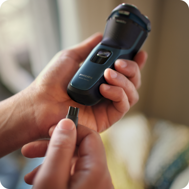 Підрівнюйте вуса та бакенбарди завдяки вбудованому тримеру.