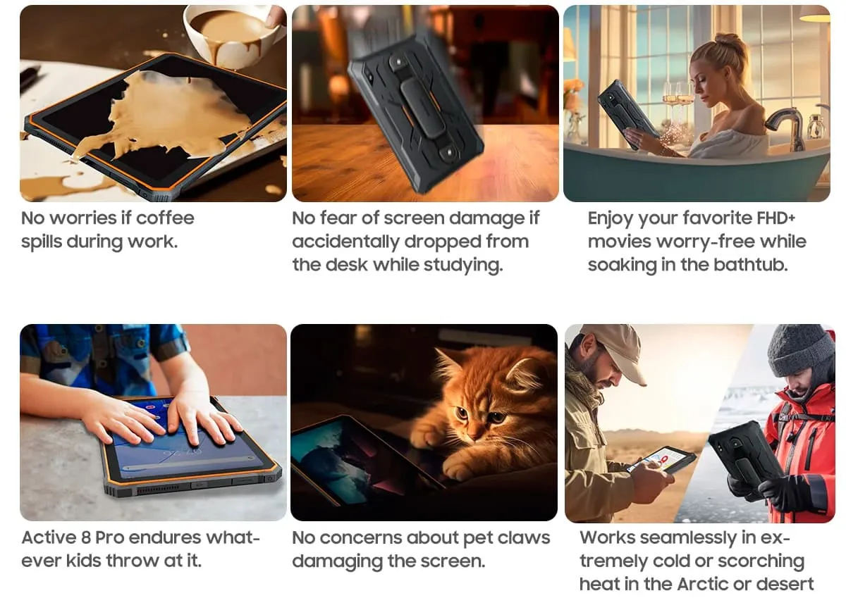 Blackview Active 8 Pro — це не просто планшет, а повноцінний робочий інструмент, створений для тих, хто щодня стикається з реальними навантаженнями. Він розрахований на активну експлуатацію, тривалі робочі зміни, постійні переміщення та умови, у яких звичайна техніка швидко виходить з ладу.