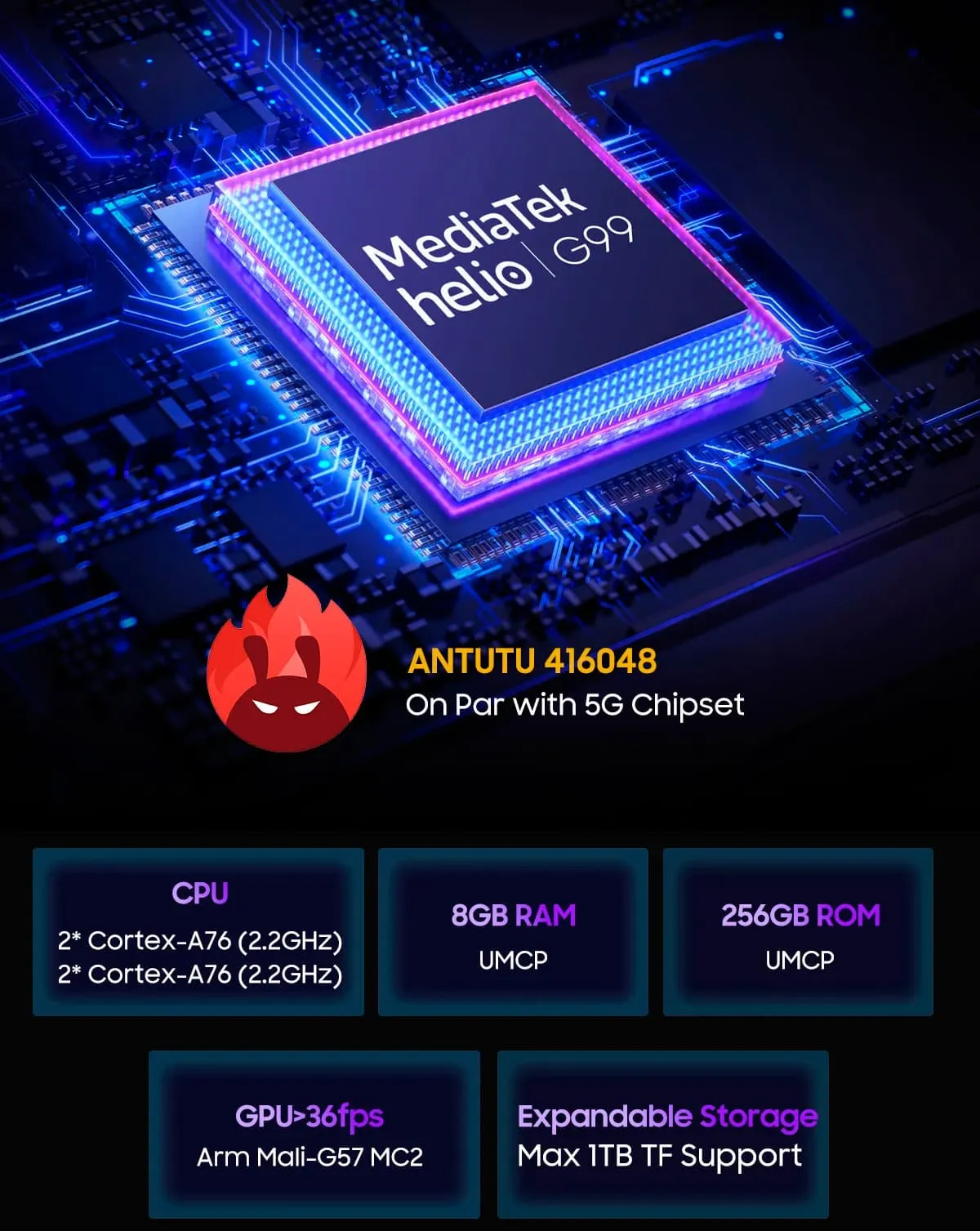 Всередині Blackview Active 8 Pro працює сучасний 8-ядерний процесор MediaTek, оптимізований для стабільної роботи в захищених пристроях.