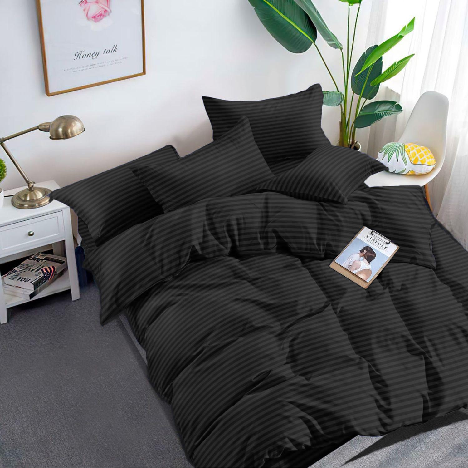 Постільна Білизна Чорна Однотонна Наволочки Простирадло Підковдра Чорний Страйп Денвер