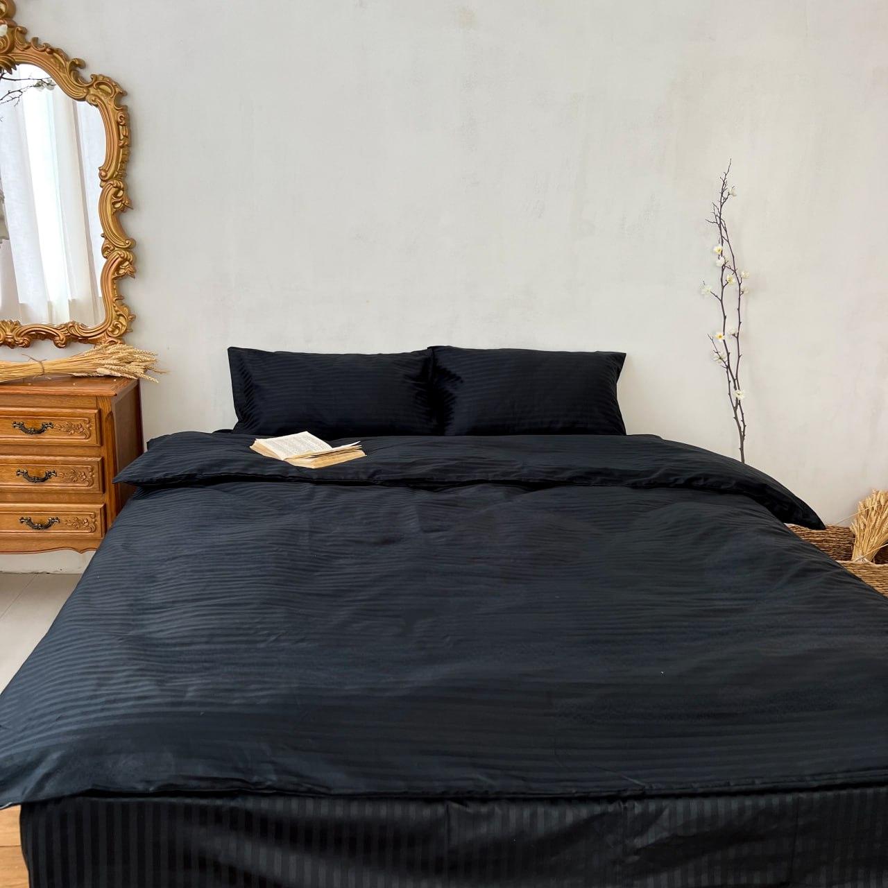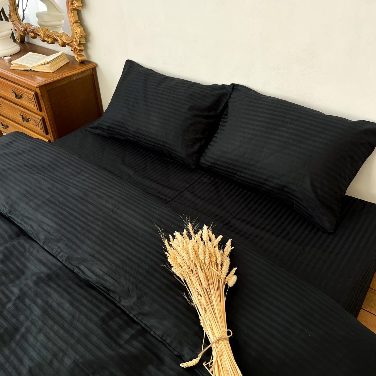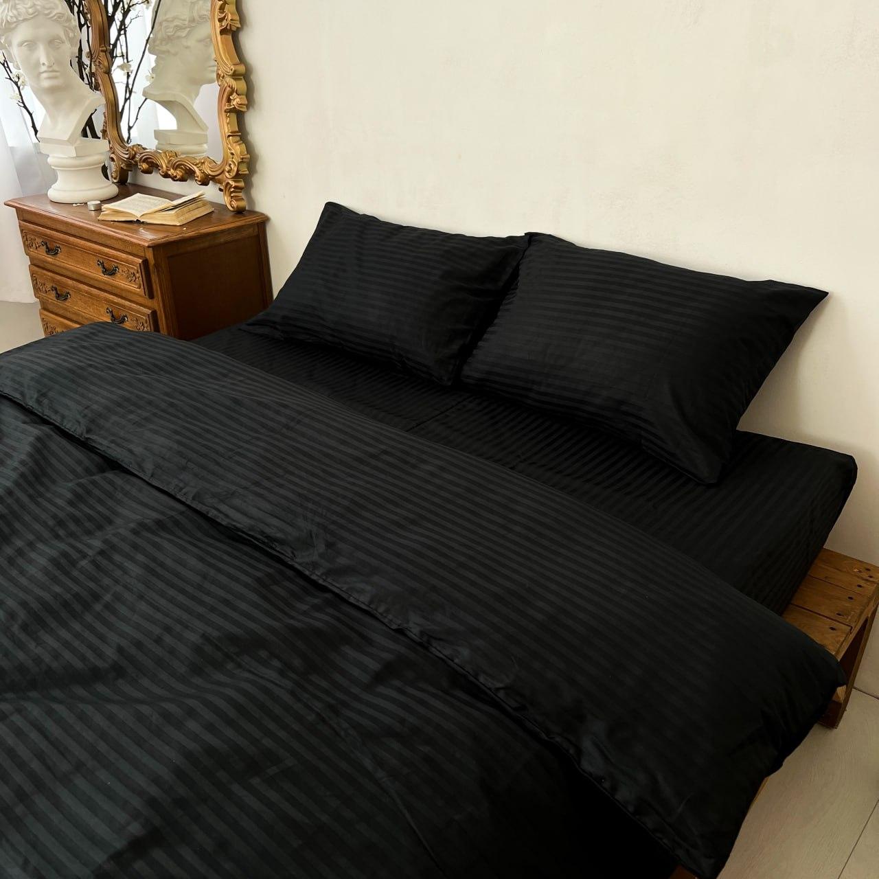 Постільна білизна чорна однотонна наволочки простирадло підковдра Чорний страйп