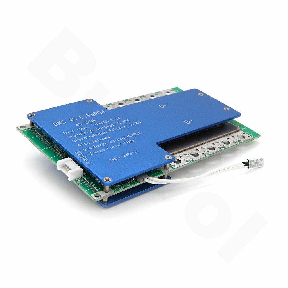 BMS плата для LiFePO4 14,6V 4S 200A з контролем температури призначена для управління та захисту літій-залізо-фосфатних акумуляторів. Вона забезпечує стабільну роботу батареї, запобігаючи перегріву та іншим потенційним проблемам. Завдяки високому номінальному струму в 200А, ця плата ідеально підходить для потужних застосувань, таких як електромобілі, сонячні системи та інші пристрої, що вимагають надійного джерела енергії.