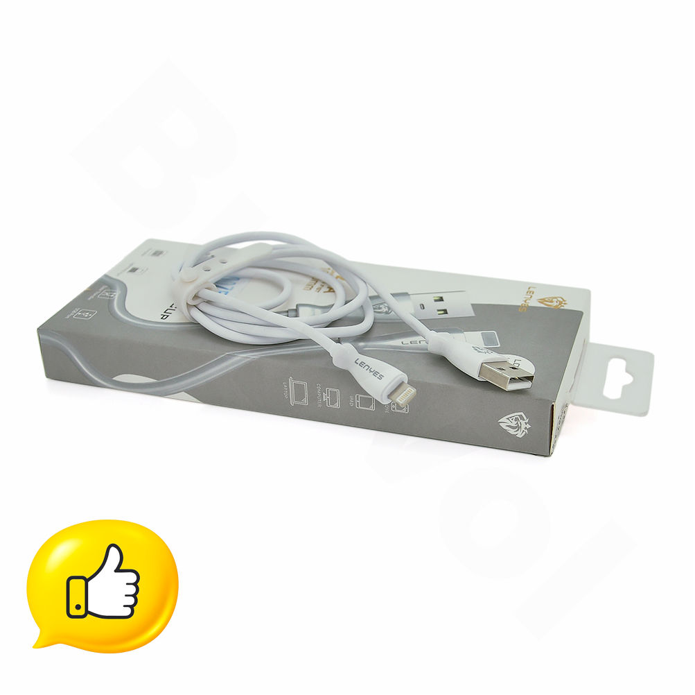 Кабель USB-Lighting Lenyes 1м білий для швидкої зарядки 2.4A — надійне рішення для вашого смартфона