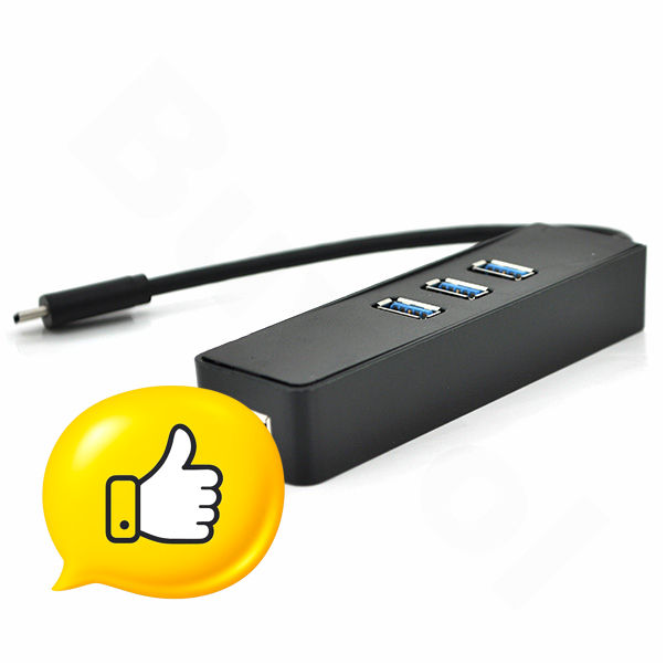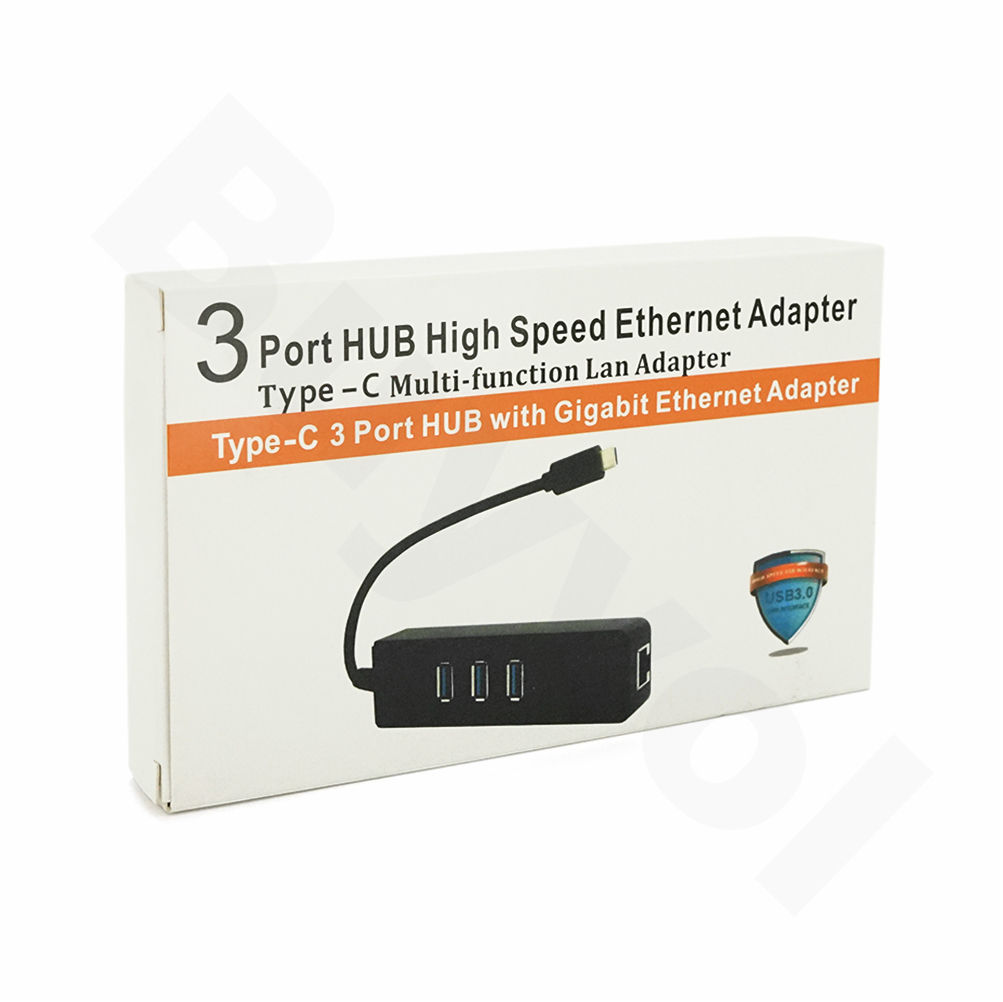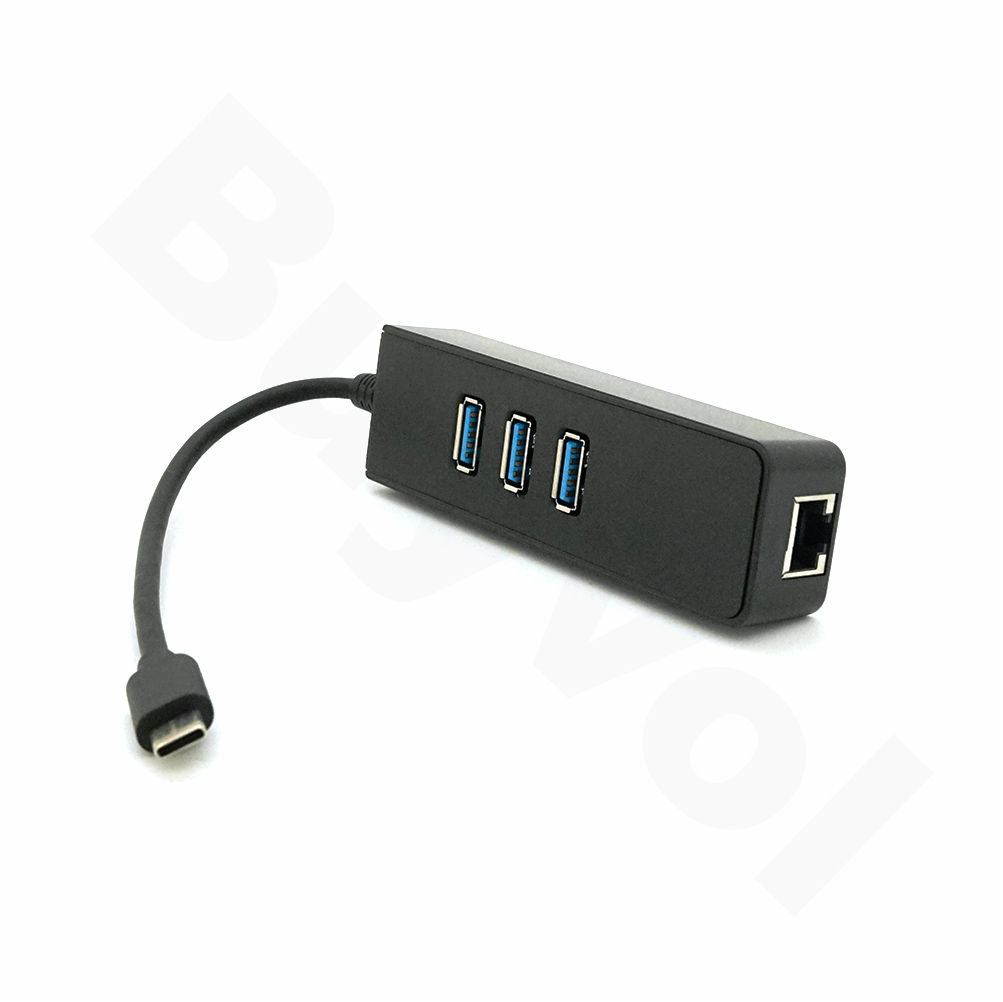 Type-C хаб 3xUSB 3.0 + Ethernet чорний для ноутбуків і планшетів розширювач портів USB інтернет адаптер BUV
