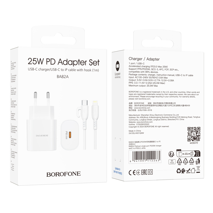 Набір СЗУ Borofone 25W PD ідеально підходить для власників пристроїв Apple, які цінують швидке та якісне зарядне рішення. Він буде корисний як для особистого використання, так і для професіоналів, яким необхідно підтримувати свої пристрої в робочому стані протягом усього дня.