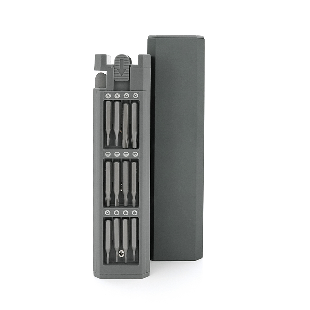 У комплект входять 44 високоякісні біти з сталі S2, магнітний тримач довжиною 115 мм, пінцет і пластиковий лопатка для відкриття корпусів без пошкоджень. Усі елементи розміщені в багаторівневому боксі з надійною фіксацією, що виключає втрату і забезпечує швидкий доступ до потрібного інструменту.