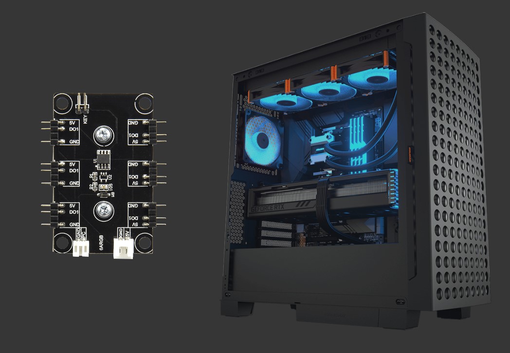 Вбудований контролер світлодіодів синхронізується з материнською платою, забезпечуючи безперебійну синхронізацію підсвічування у всій системі.