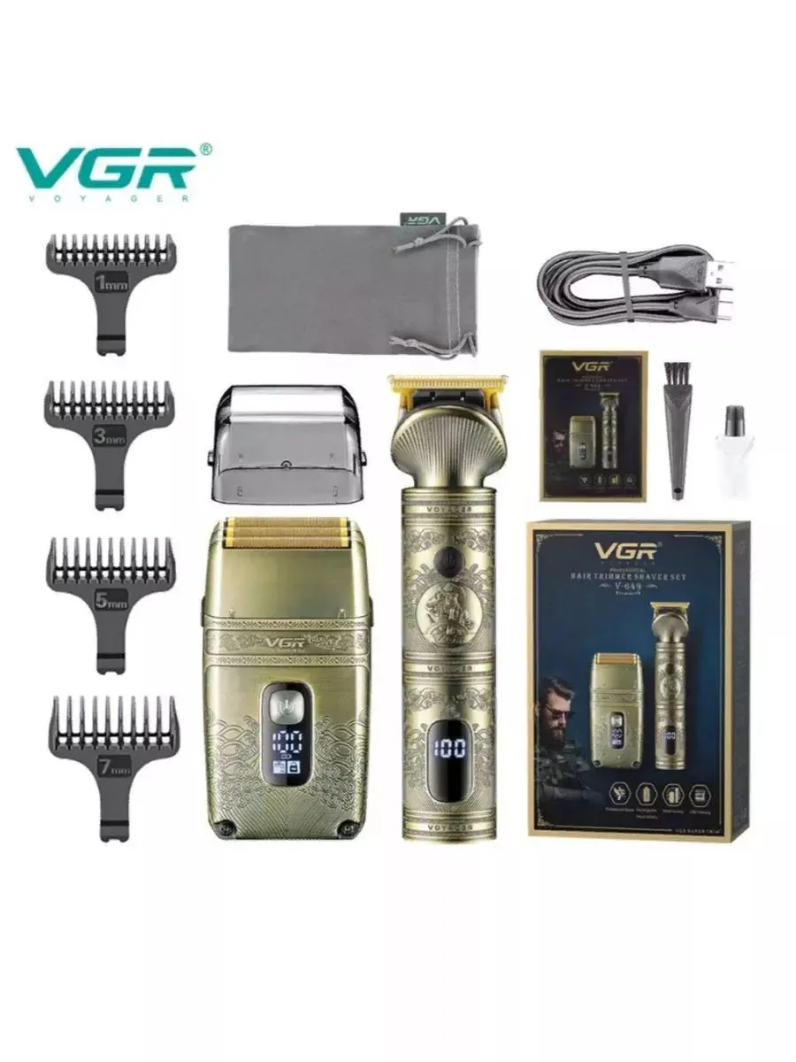 Професійний набір для стриження волосся VGR V-649VGR V-649 — це набір, що складається з тримера й електробритви (шейвера). Електробритва та тример мають металевий корпус і дисплей.V-649 — це потужна та зручна машинка для стриження волосся, яка є ідеальним інструментом для професійних перукарів і стилістів, а також для використання вдома.