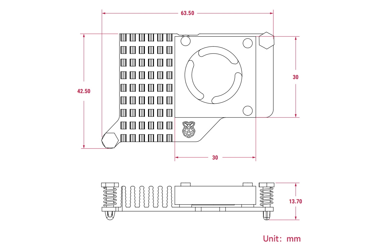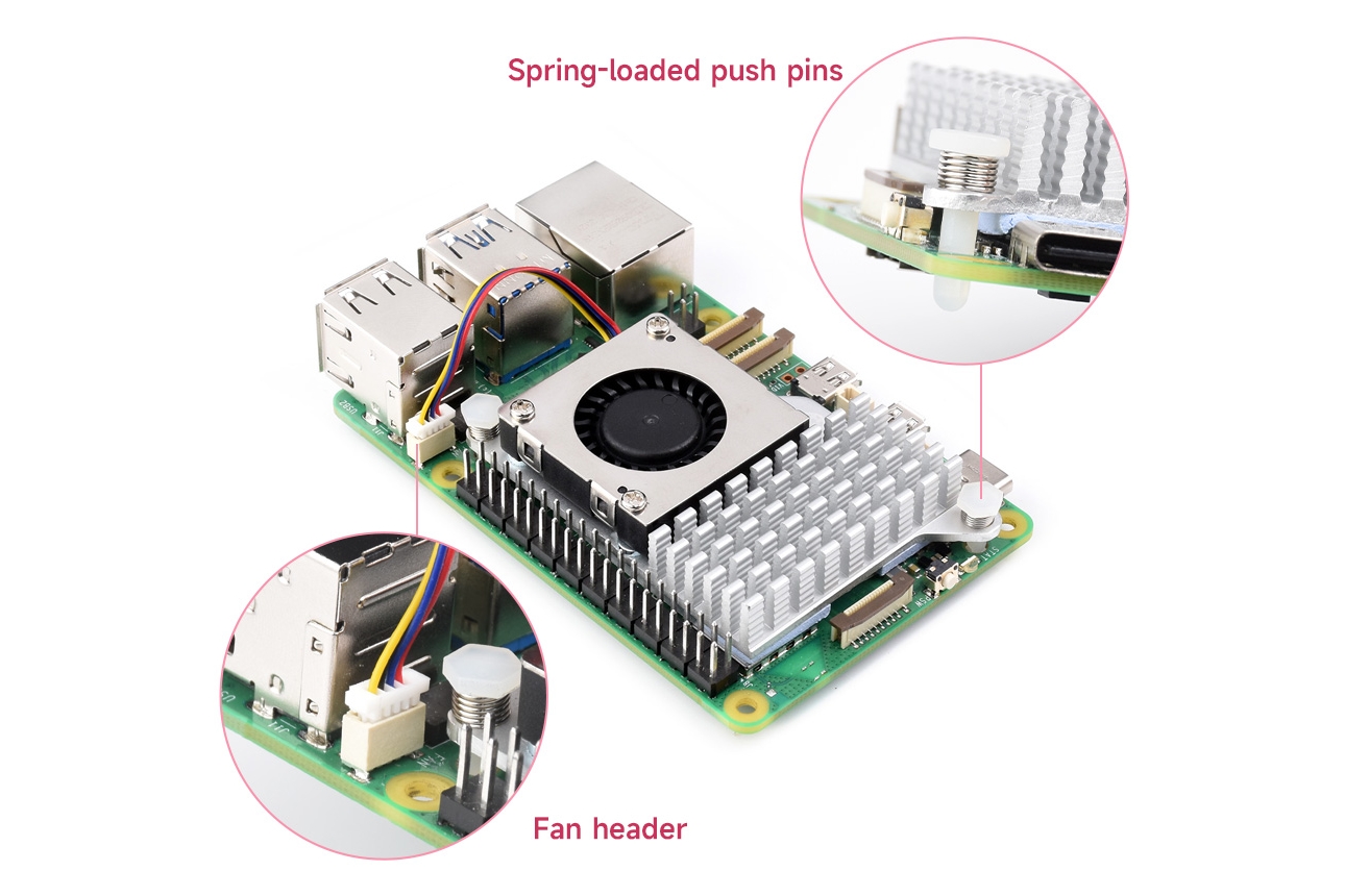 Кулер виконаний з високоякісних матеріалів: анодованого алюмінію та нетоксичного пластику, що гарантує його довговічність та безпеку. Він підходить для широкого спектру проектів на базі Raspberry Pi, включаючи медіаплеєри, ігрові консолі та інші пристрої.