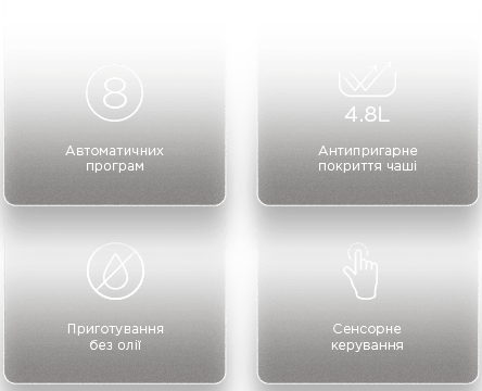 тип: мультипіч об'єм чаші: 4.8 л кількість програм: 8