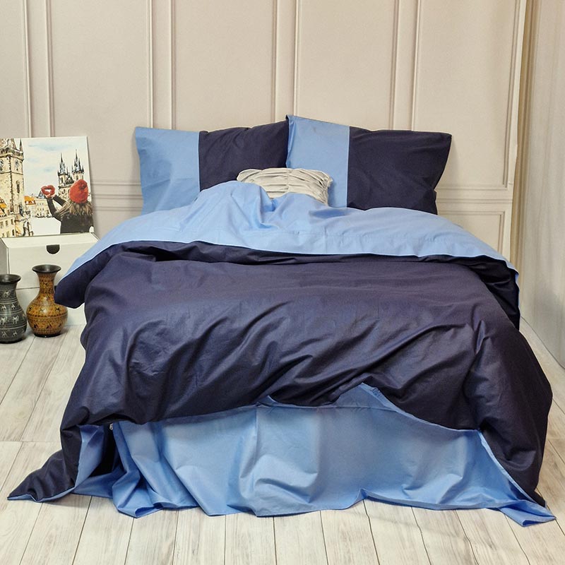 Постільна Білизна Premiere Темно Синя Блакить Ранфорс Двоспальна Преміум Meriset DBUY