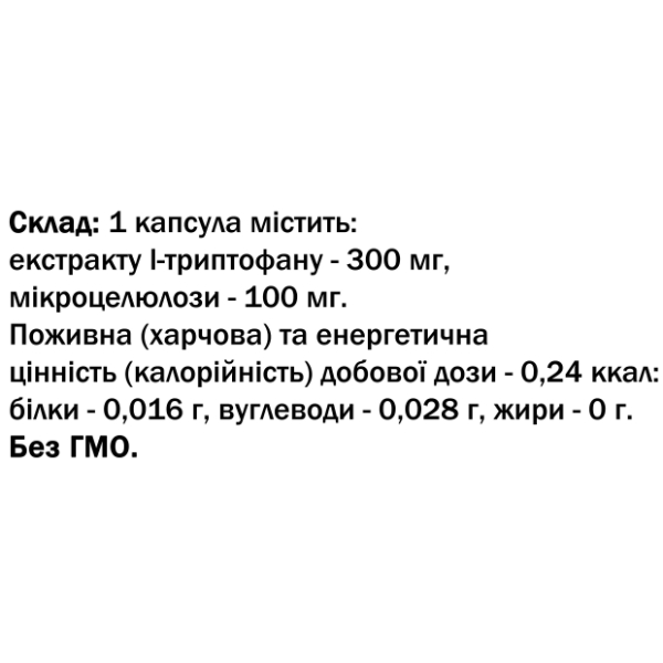 Триптофан не синтезируется организмом человека, а поступает с едой. Суточная потребность взрослого человека составляет 0,30 г (300 мг, одна капсула)