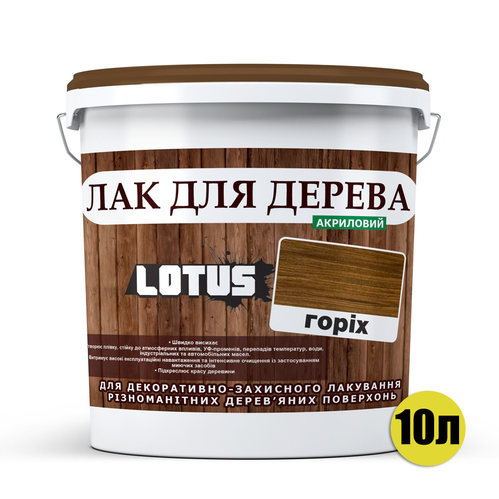 Підготовка поверхні та нанесенняОснова для нанесення лаку повинна бути міцною, очищеною від пилу, бруду, вапна, жиру та інших забруднень та відшарування. Попередньо не оброблені дерев'яні поверхні необхідно загрунтувати акриловим ґрунтом, щоб забезпечити довговічніше покриття та кращу адгезію. Перед застосуванням лак необхідно ретельно перемішати до однорідної консистенції. При необхідності розбавити водою до потрібної в'язкості (але не більше 10% від загального обсягу вмісту). Роботи слід виконувати за сприятливих погодних умов, тобто. за відсутності опадів, температури від +5°С до +30°С та відносної вологості повітря 60%. Наносити пензлем або валиком із дрібним ворсом в 1-2 шари (залежно від типу поверхні). Другий шар можна наносити вже за 60 хвилин.Повне висихання та стійкість до механічних впливів настає через 24 години. Для повного сушіння та максимального збереження властивостей матеріалу, його стійкість до атмосферних впливів рекомендується зберегти оброблену поверхню в сприятливих умовах до 48 годин.Зберігання та транспортуванняЛак необхідно зберігати та транспортувати при температурі від +5°С до +35°С у щільно закритій тарі.Не допускати заморожування лаку. Чи не змішувати з іншими лакофарбовими матеріалами. Лак не містить токсичних та шкідливих речовин.Гарантійний термін зберігання 24 місяці з дати виготовлення у щільно закритій тарі виробника.Запобіжні заходиЗберігати у недоступному для дітей місці. Під час роботи використовувати рукавички. У разі потрапляння на шкіру – змити водою. При попаданні у вічі, відразу промити чистою водою, звернутися до лікаря. Не виливати лак у каналізацію.
