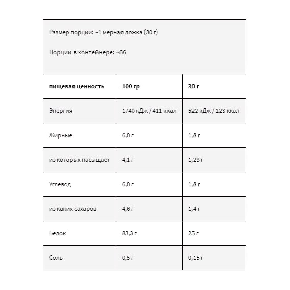 Смешайте ~1 мерную ложку порошка (30 г) с 200-250 мл воды или обезжиренного молока. Используйте до или сразу после тренировки.
