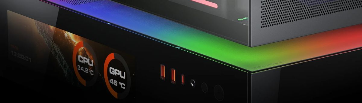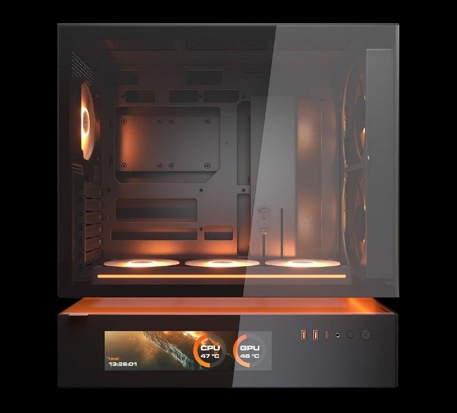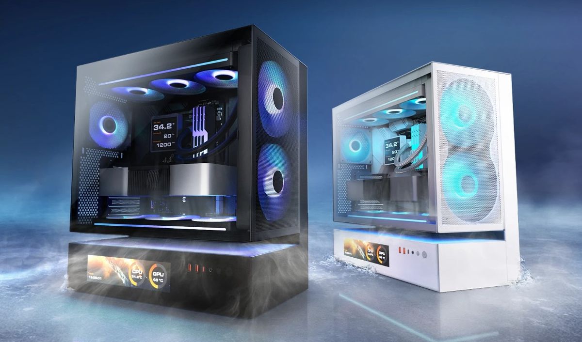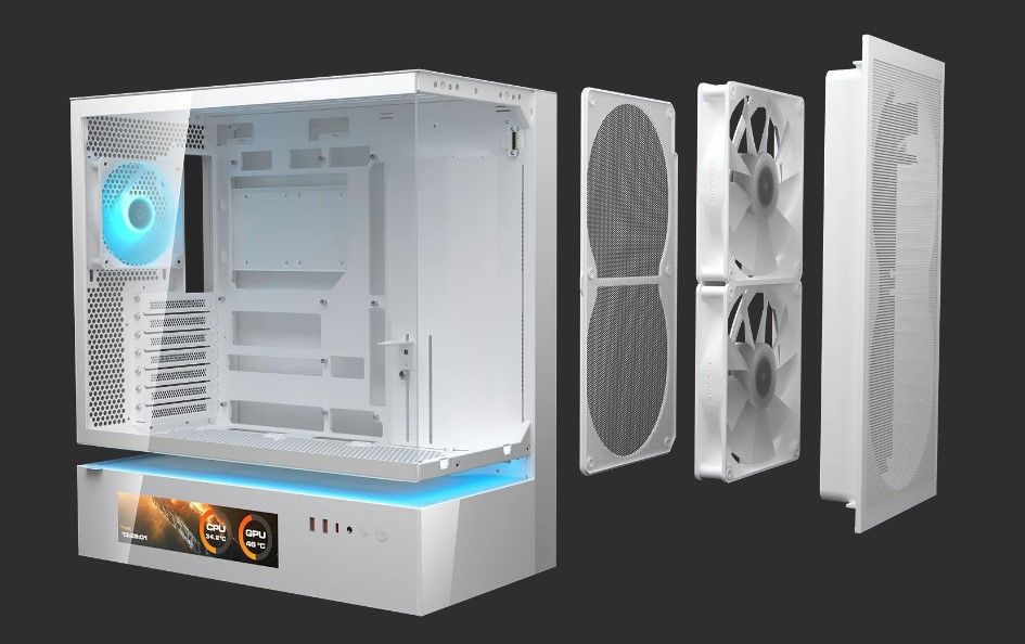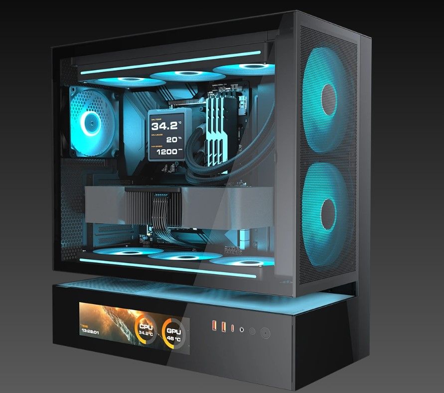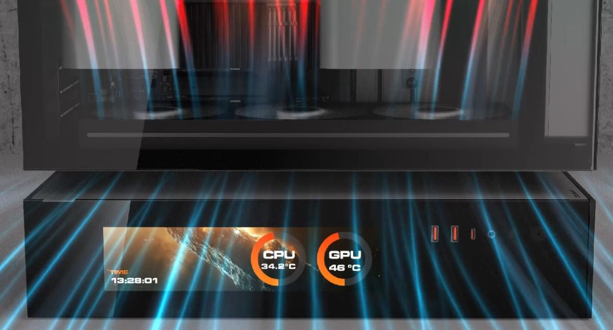 CFV235 Mesh Vision — це новий тип корпусу для ПК з інноваційною конструкцією центральної плаваючої вентиляції (CFV). Вона розділяє відсік блоку живлення і основний відсік, дозволяючи використовувати відкритий простір між ними для охолодження за рахунок додаткової вентиляції, зберігаючи компактність без шкоди для поліпшеного охолодження, закладеного в архітектуру. Вбудований 9.16-дюймовий IPS TFT LCD-дисплей забезпечує програмний моніторинг системи в режимі реального часу з роздільною здатністю 1920 x 462 і частотою оновлення 60 Гц, відображаючи критично важливі дані і настроювані візуальні ефекти. У поєднанні з модулем передньої панелі “3-в-1”, що об’єднує сітку, два 160-міліметрові вентилятори ARGB PWM і пиловий фільтр в єдиний попередньо зібраний блок, а також технологією відображення з ефектом присутності, CFV235 Mesh Vision забезпечує візуалізований потік повітря за межами звичайних обсягів.