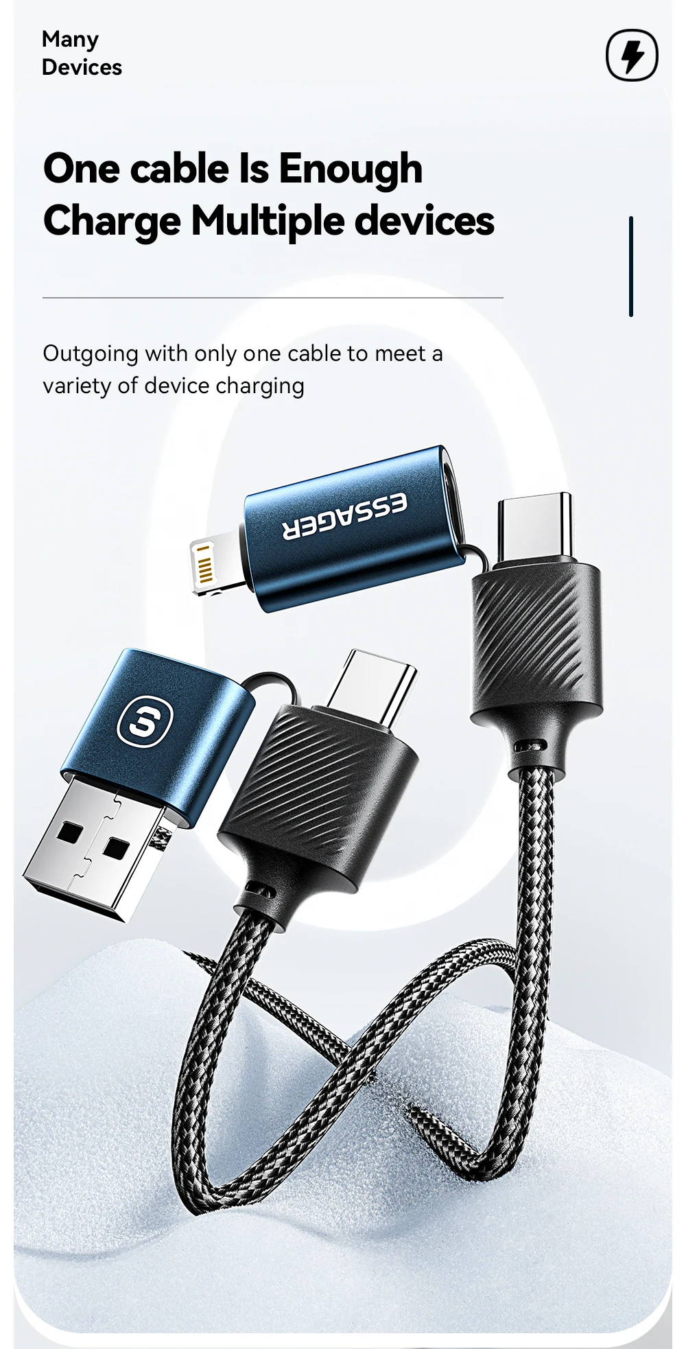 ✅ Функція «все в одному»: немає потреби носити з собою кілька кабелів для різних пристроїв, цей кабель має все в одному.