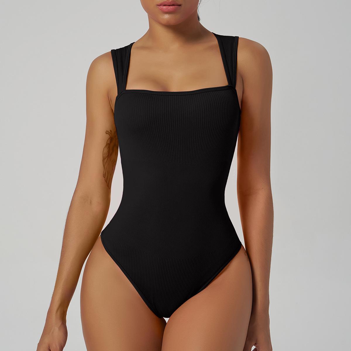 Боді Жіноче Еластичне Рубчик Чорне Однотонне На Бретелях DBUY