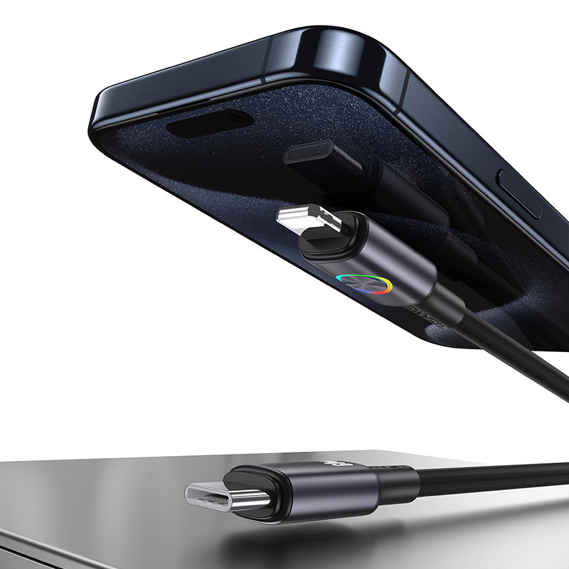 Кабель виготовлений із міцного алюмінієвого сплаву та плетеного матеріалу, що гарантує його довговічність та стійкість до зносу. Він підходить для швидкого заряджання пристроїв з портом Lightning, таких як iPhone 8-14, що робить його незамінним аксесуаром для користувачів Apple.