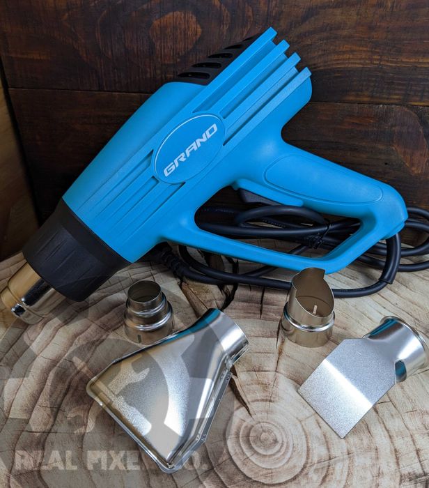 Термофен для паяння пластику, Якісний фен технічний, Будівельні фени технічні 2200W Grand (Чохія), ODGЦе універсальне обладнання, створене для видалення лакофарбових покриттів, наклейок, а також для розморожування та інших процесів. Виріб вирізняється гарною потужністю 2200 Вт і наявністю відразу 2 температурних режимів: 350 і 600 C. Це дає змогу домагатися продуктивності у 300 і 500 л/хв.