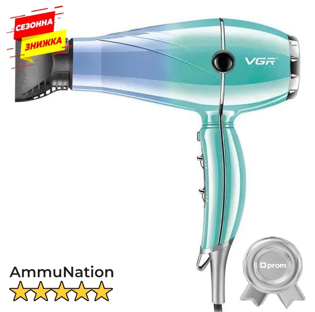 Фен для сушіння укладання волосся VGR V-452 електрофен з двома концентраторами 2400 AmmuNation