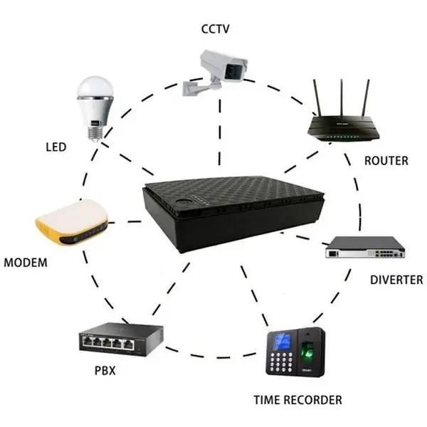 - Універсальність портів: Одночасне живлення кількох пристроїв. Має виходи: DC 9V, DC 12V, USB 5V та POE (15V/24V) для живлення антен або камер.
