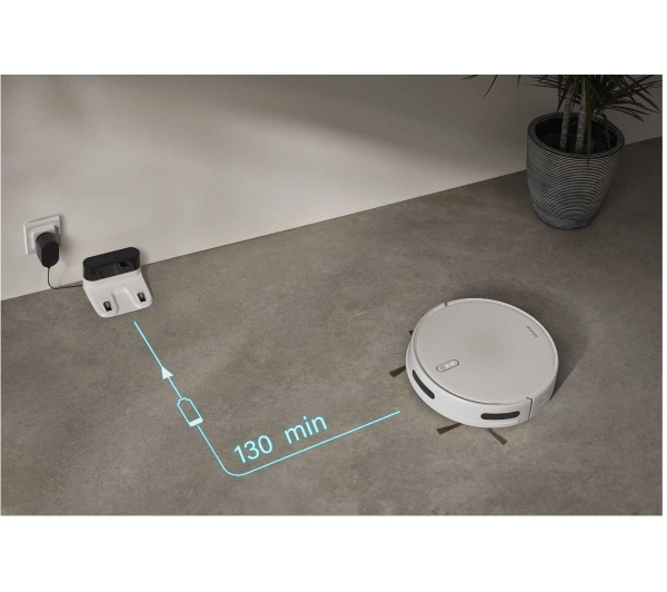 Під час пилососіння робот може потребувати повторної зарядки акумулятора. Тоді пристрій повернеться до док-станції, щоб поповнити енергію. Коли батарея буде повна, він відновить прибирання з того місця, де мусив його перервати. Тож немає потреби організовувати його роботу – прибирання підлоги може відбуватися навіть під час вашої відсутності.