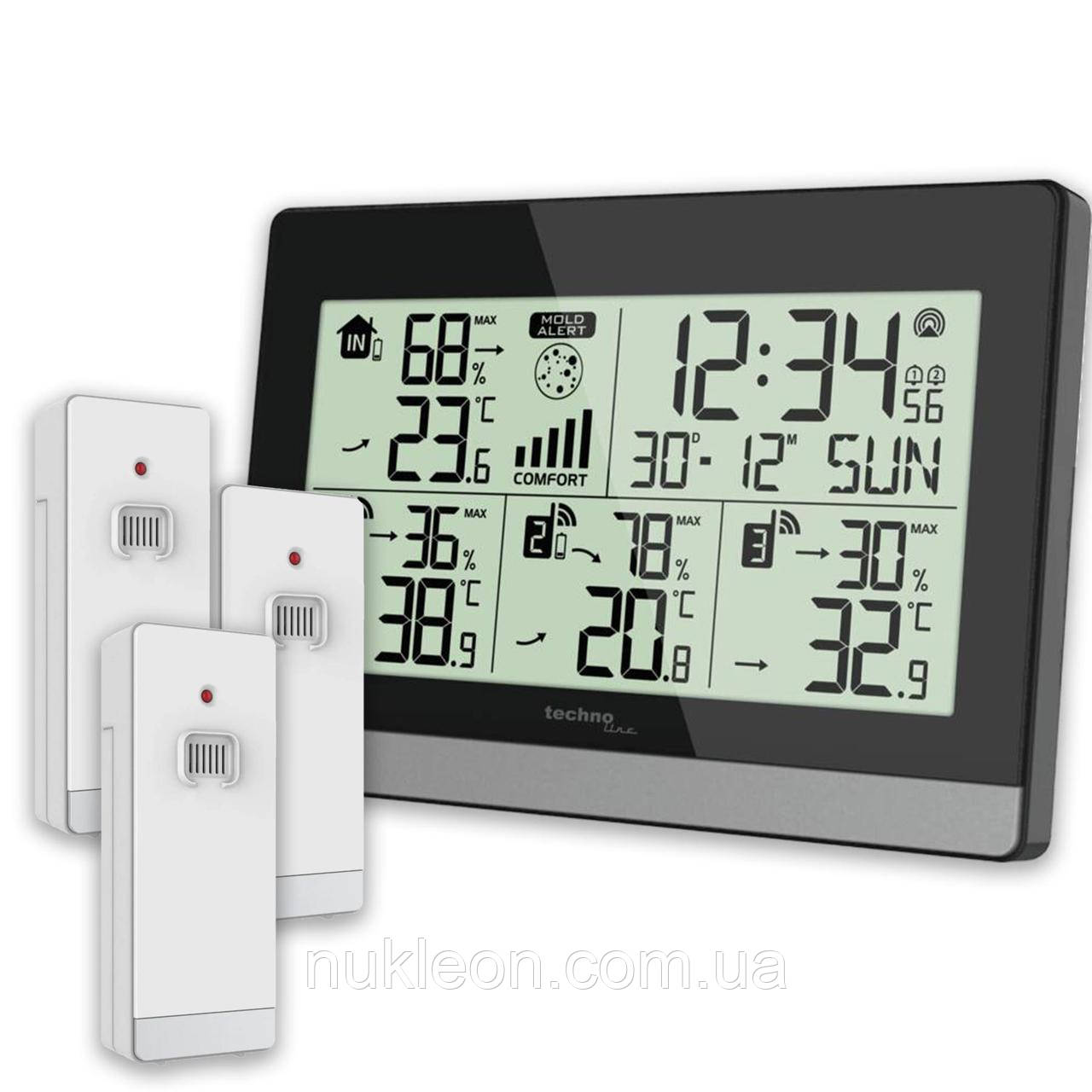 Термогігрометр Technoline WS7065 Black/Silver — це готове рішення для контролю температури та вологості в чотирьох різних точках у радіусі 60 метрів. Такий прилад чудово підійде не тільки для квартири, а й для музеїв, галерей, складів, присадибних ділянок, де підтримка заданого клімату є визначальною умовою збереження експонатів, товарів або рослин. Термогігрометр постачається в комплекті з трьома радіодатчиками, кожен із яких передає показання на основну станцію. Також прилад може повідомляти про можливість голоходу, про загрозу виникнення цвілі та зображає рівень комфорту в приміщенні.