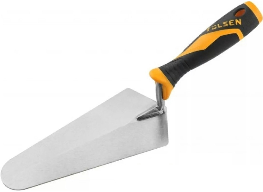 Tolsen 41005 — це надійна трикутна кельма розміром 200 мм, виготовлена з високоякісного металу. Завдяки товщині 1.4 мм вона забезпечує міцність та довговічність. Ергономічне гумове руків’я гарантує комфортний хват під час роботи.