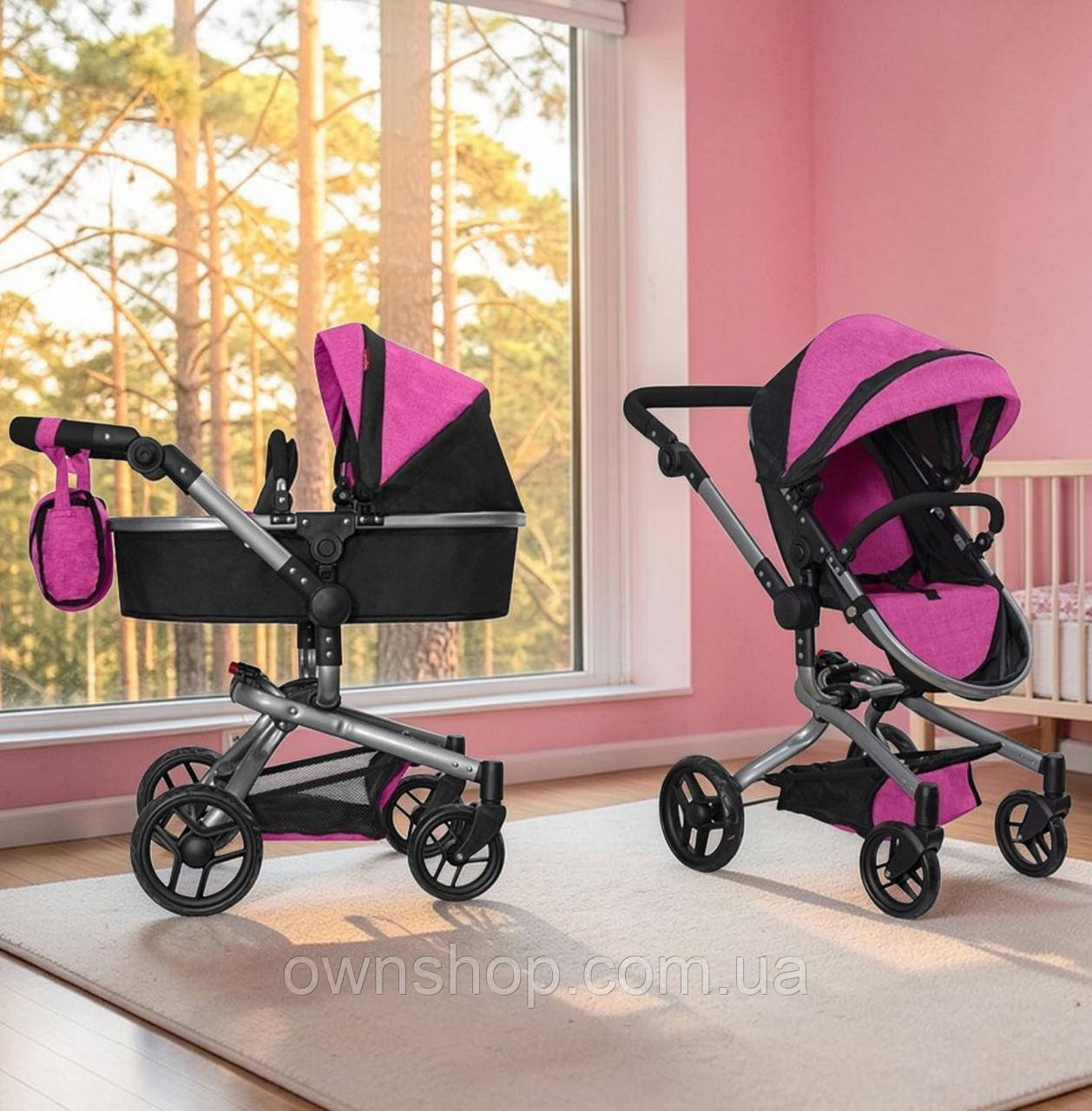 Коляска для ляльки із сумкою 9695 Carrello малинова, max висота ручки 80 см
