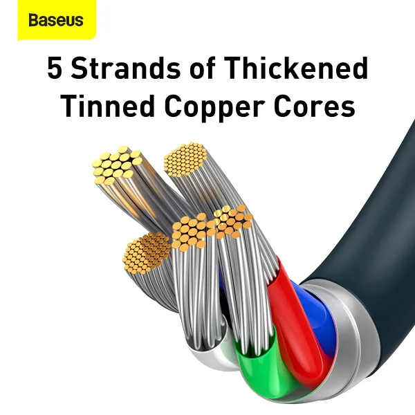 Кабель виготовлений із луженої мідної серцевини, що забезпечує стабільну передачу струму та довговічність. Зовнішня оболонка з міцного ABS-матеріалу відрізняється гнучкістю, стійкістю до пошкоджень і не жовтіє з часом. Посилені конектори ефективно захищають кабель від зламів у місцях найбільшого навантаження.