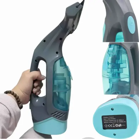 - Пристрій поєднує функції мийника та пилососа для вікон, дозволяючи легко видаляти воду, бруд та розлучення після очищення скла