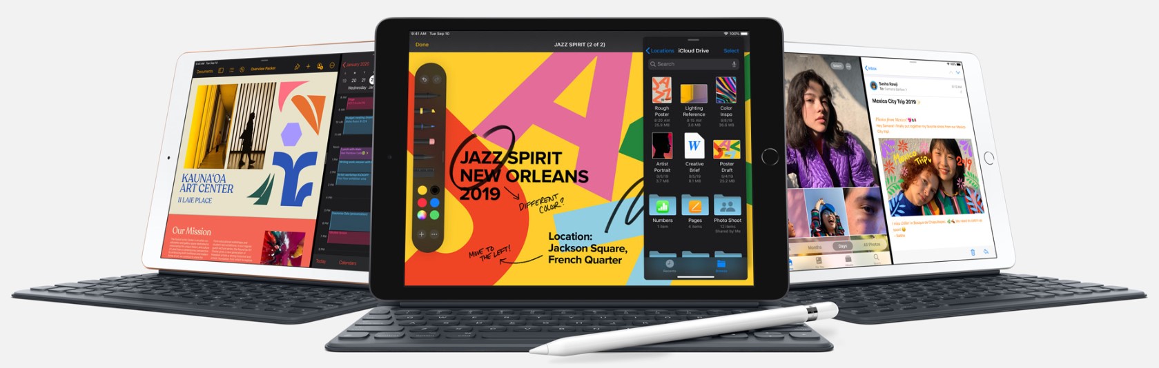 Збільшений дисплей Retina 10,2 дюйма Сумісність з повнорозмірною клавіатурою Smart Keyboard і з Apple Pencil. Потужний процесор A10 Fusion. Підключення джойстиків Xbox і PS4 Швидкий зв'язок по Wi Fi і 4G LT. До 10 годин автономної роботи. Захист даних від Apple.